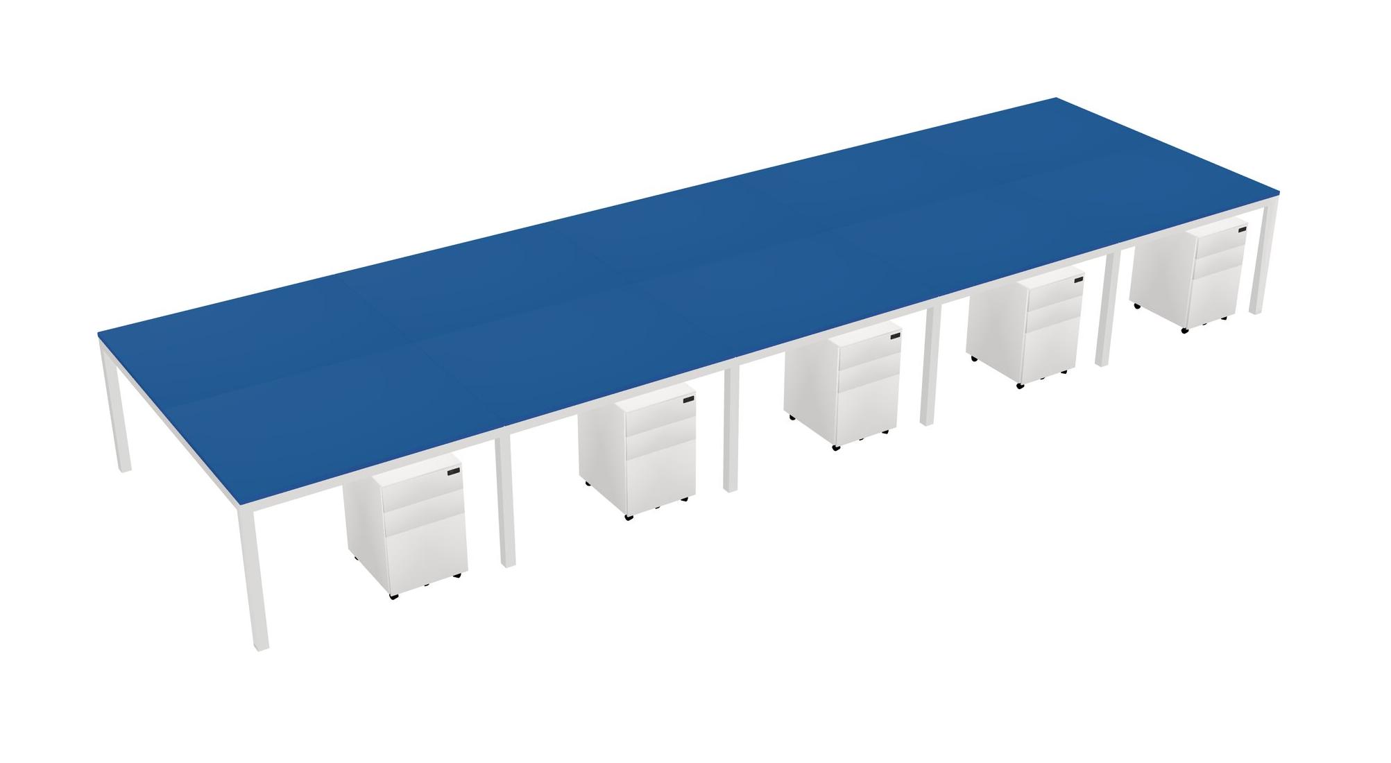 Prism Blue Shared Rectangular Office Desk With Metal Mobile Drawers For 10 Persons