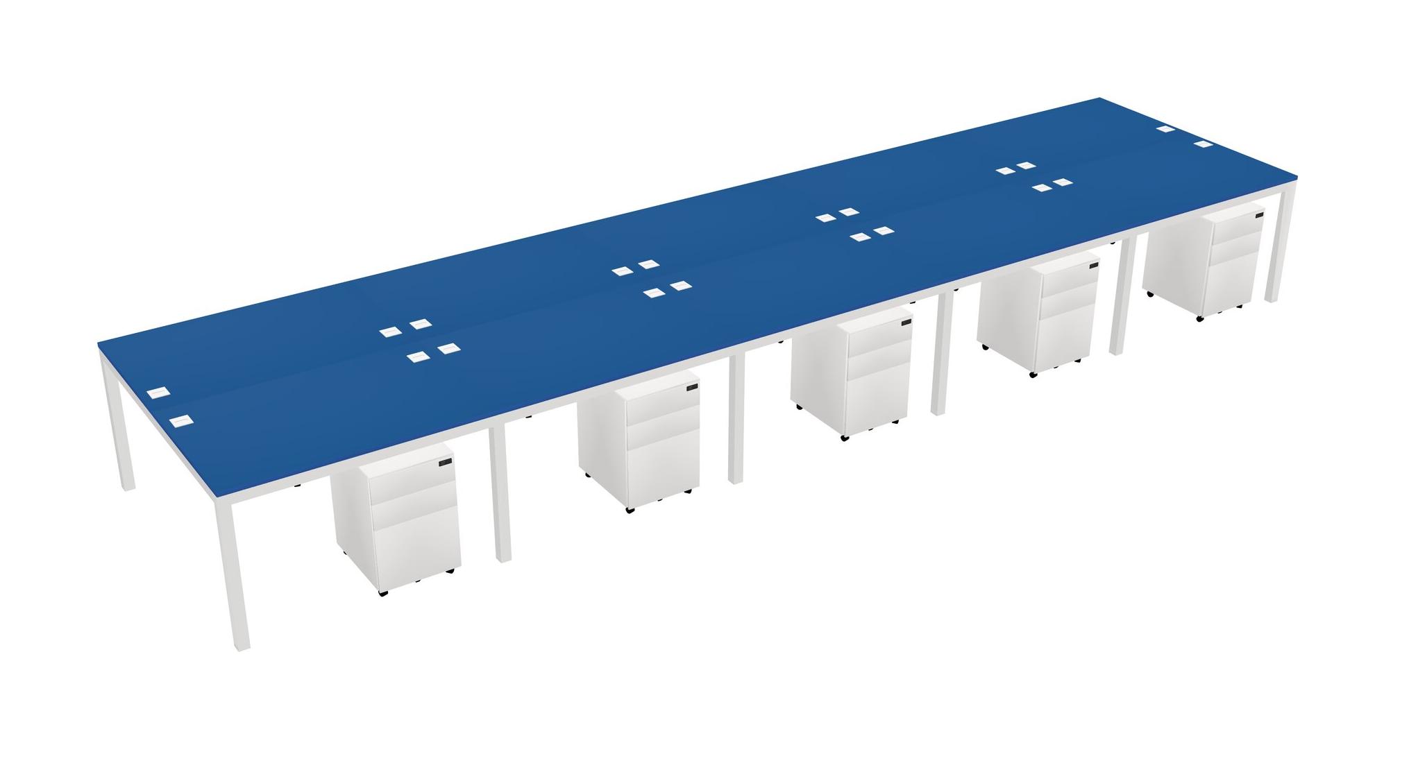 Prism Blue Shared Rectangular Office Desk With Metal Mobile Drawers For 10 Persons