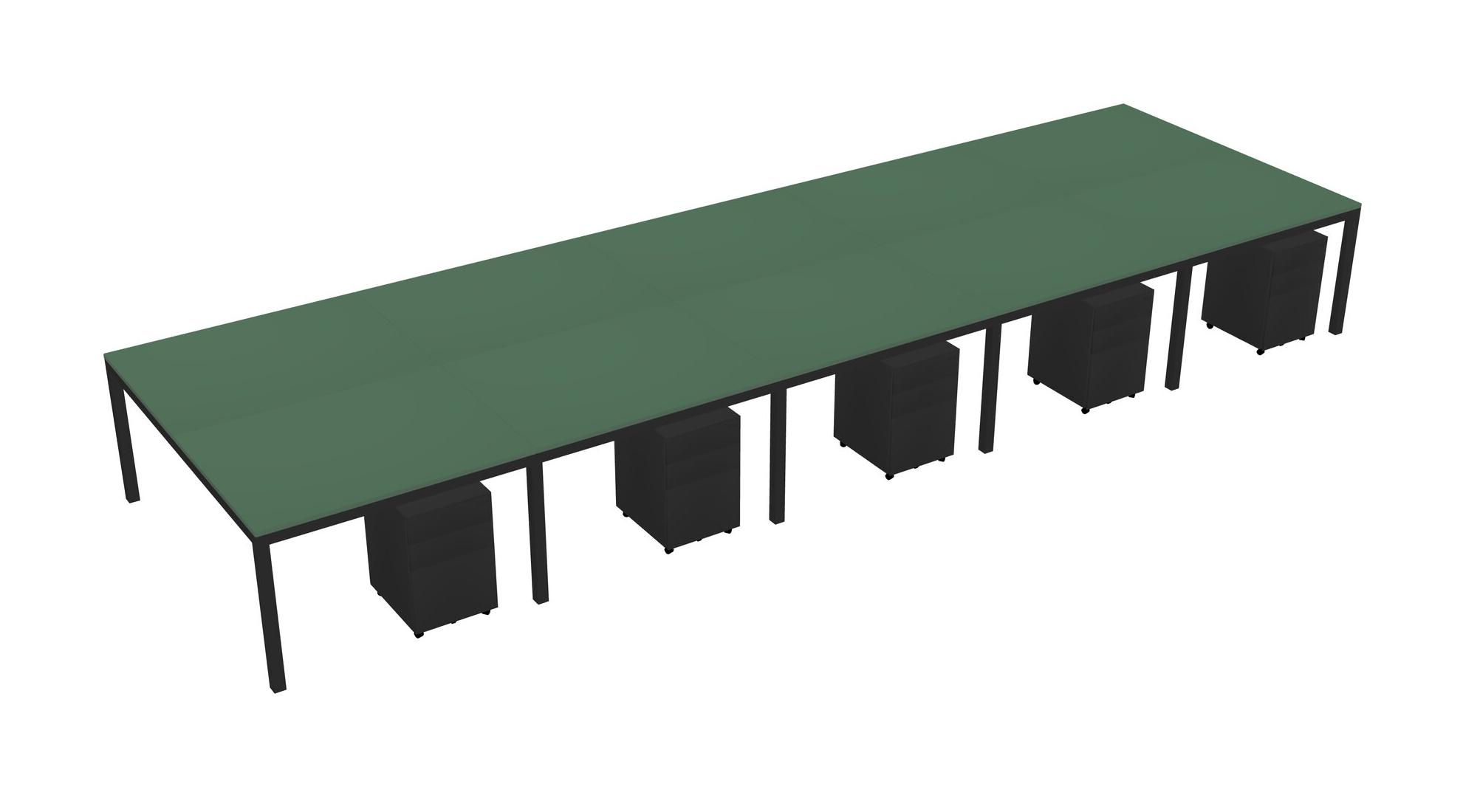 Green Shared Rectangular Office Desk With Metal Mobile Drawers For 10 Persons