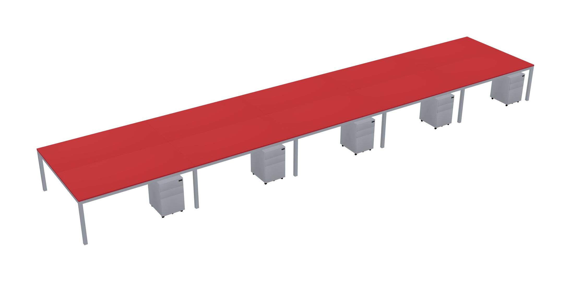 Prism Red Shared Rectangular Office Desk With Metal Mobile Drawers For 10 Persons