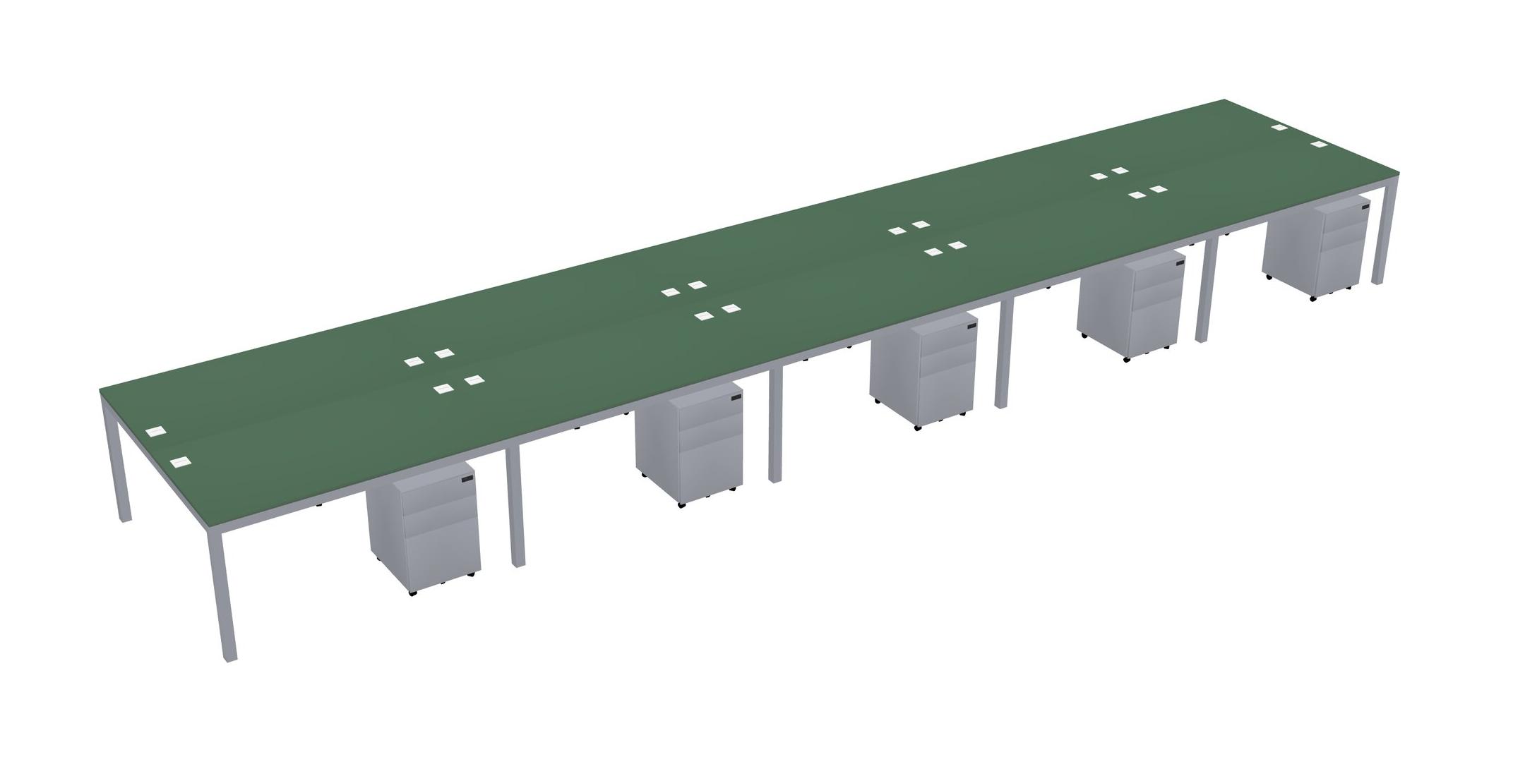 Green Shared Rectangular Office Desk With Metal Mobile Drawers For 10 Persons