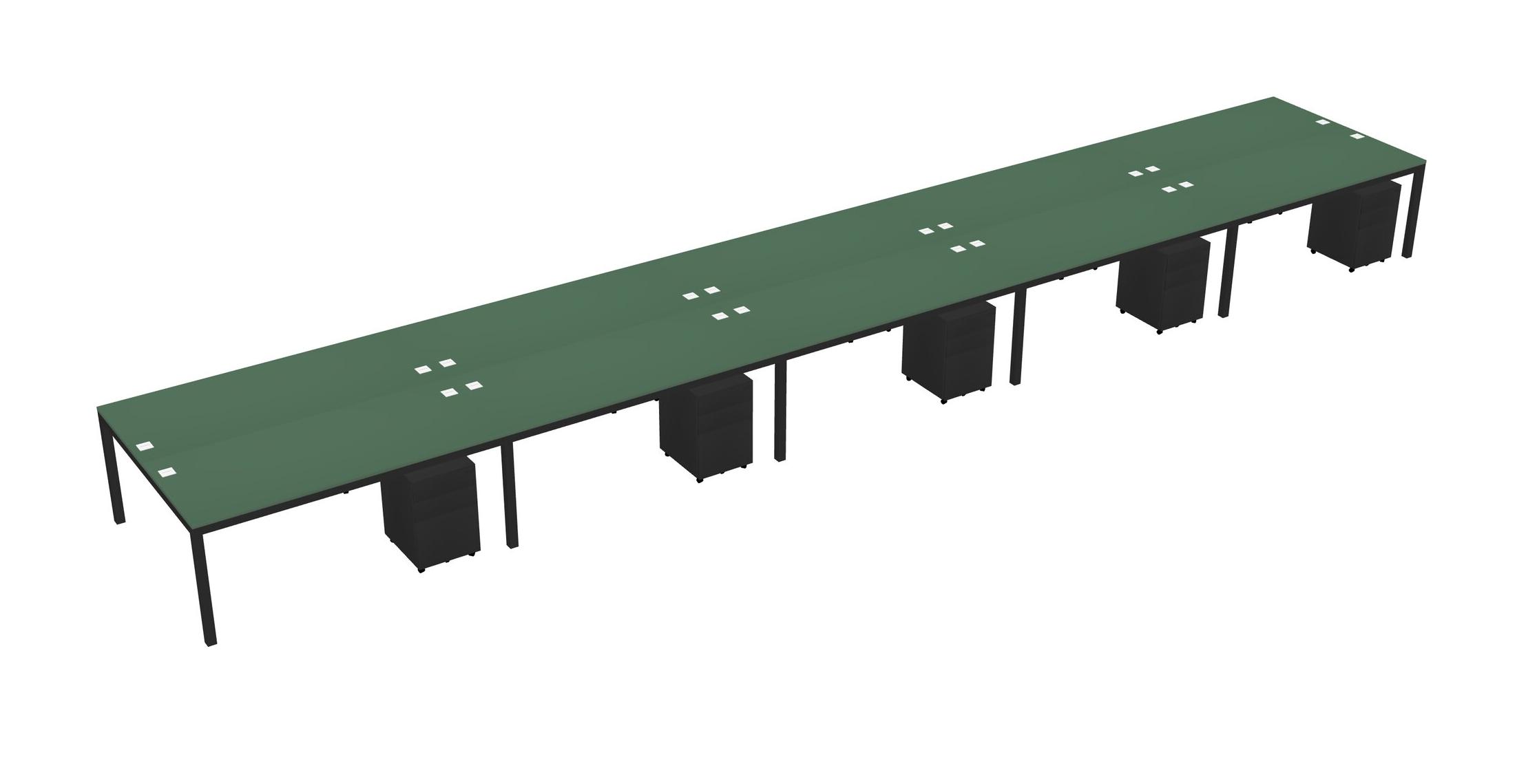 Green Shared Rectangular Office Desk With Metal Mobile Drawers For 10 Persons
