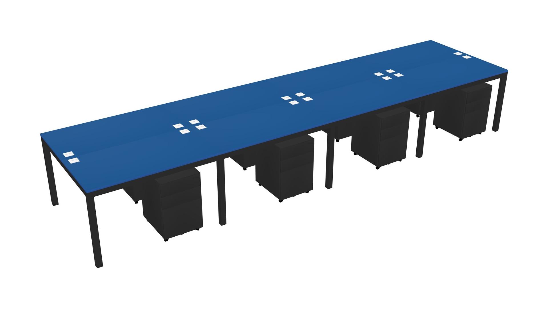 Prism Blue Shared Rectangular Office Desk With Metal Mobile Drawers For 8 Persons