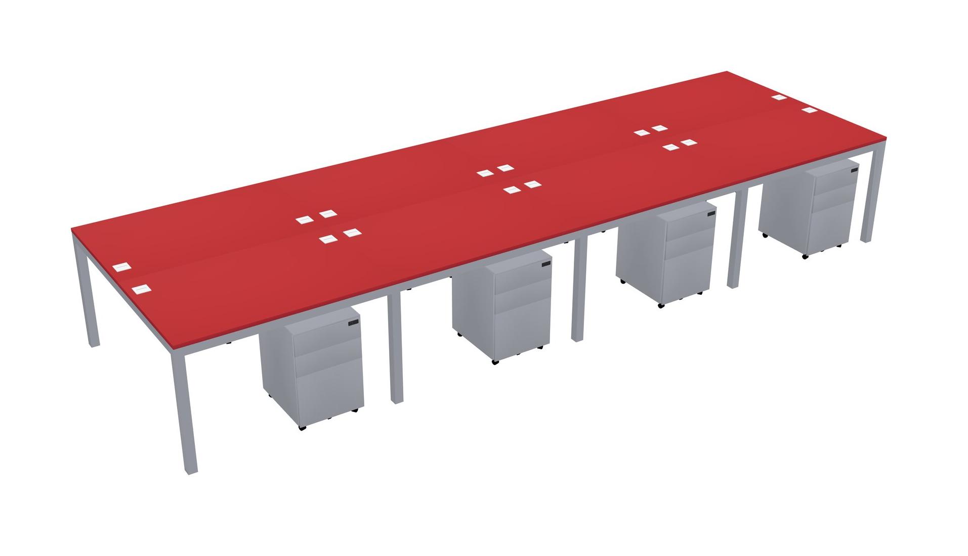 Prism Red Shared Rectangular Office Desk With Metal Mobile Drawers For 8 Persons