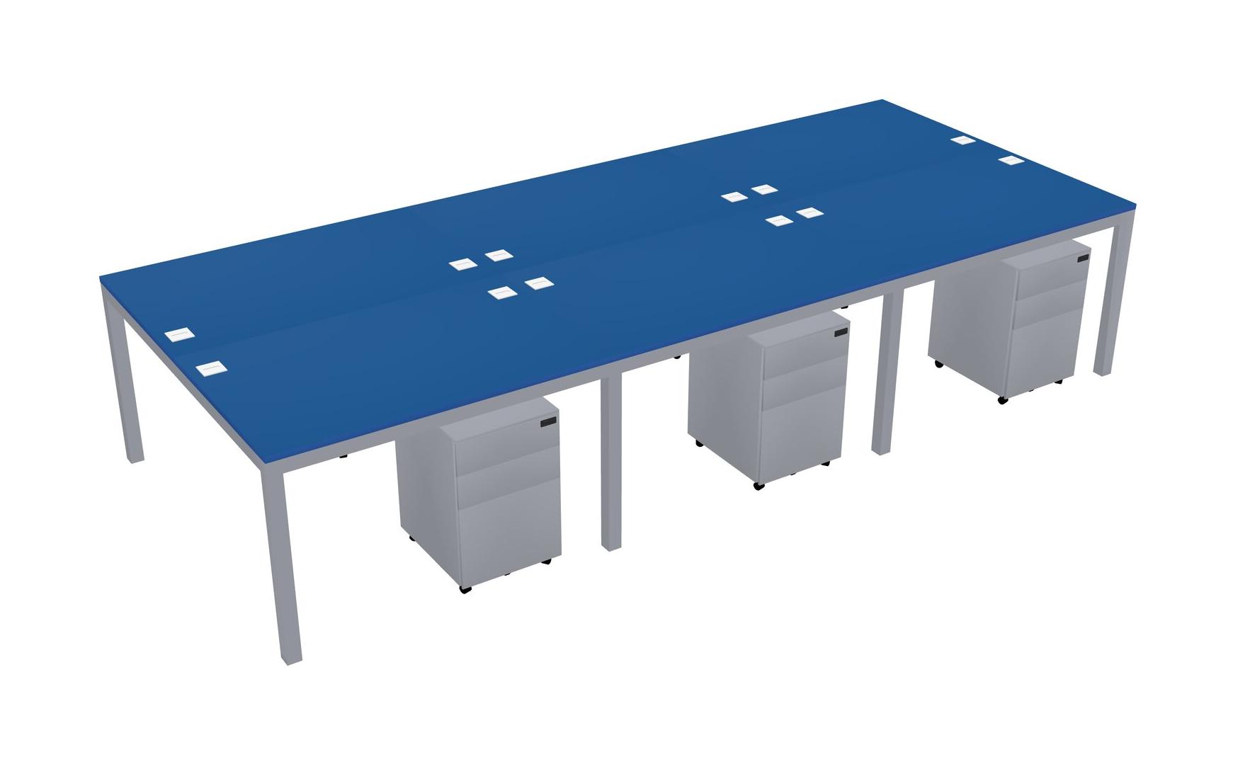 Prism Blue Shared Rectangular Office Desk With Metal Mobile Drawers For 6 Persons