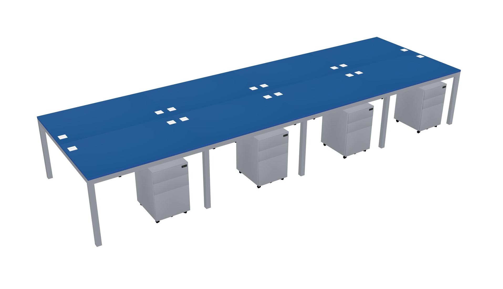 Prism Blue Shared Rectangular Office Desk With Metal Mobile Drawers For 8 Persons