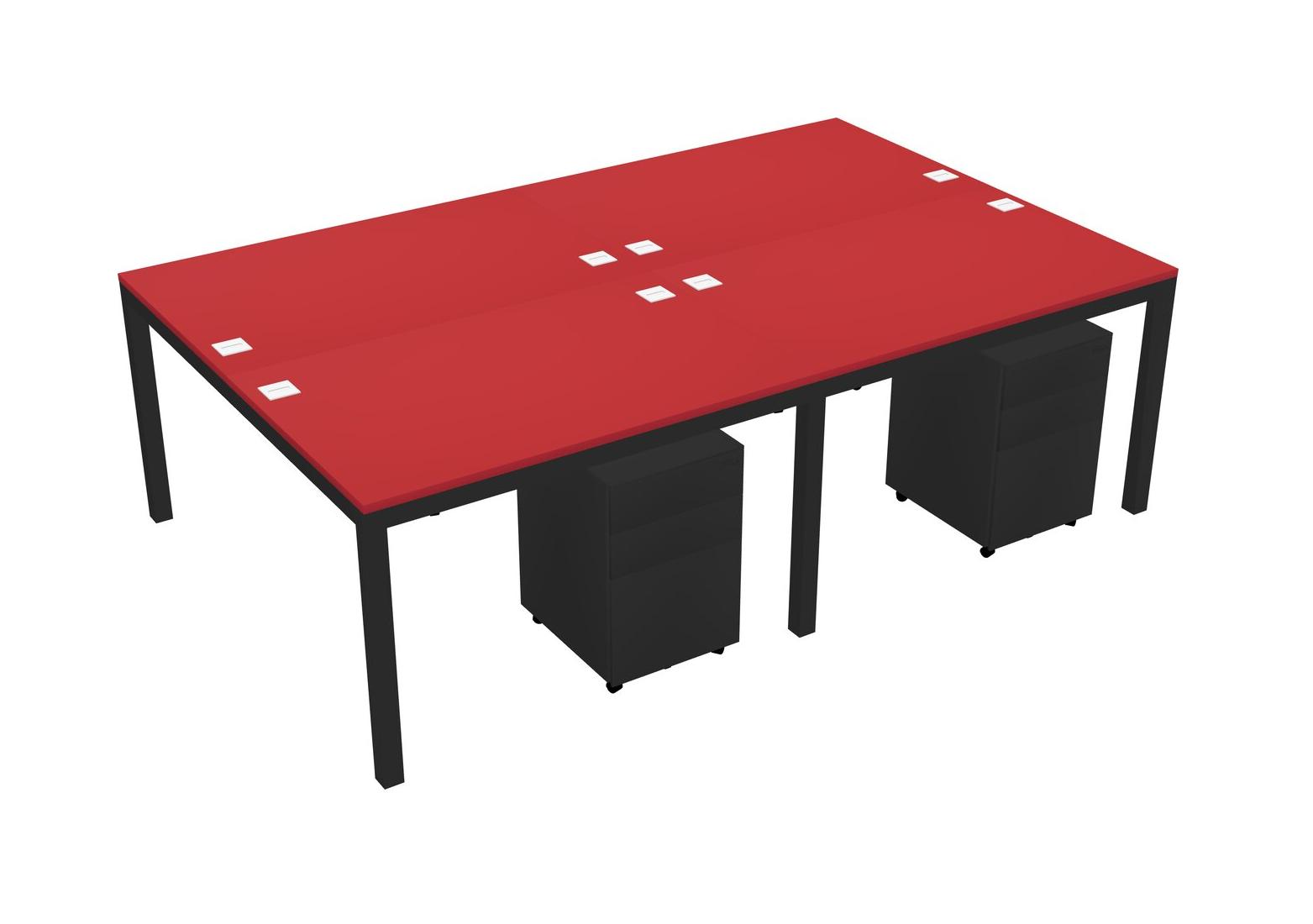 Prism Red Shared Rectangular Office Desk With Metal Mobile Drawers For 4 Persons