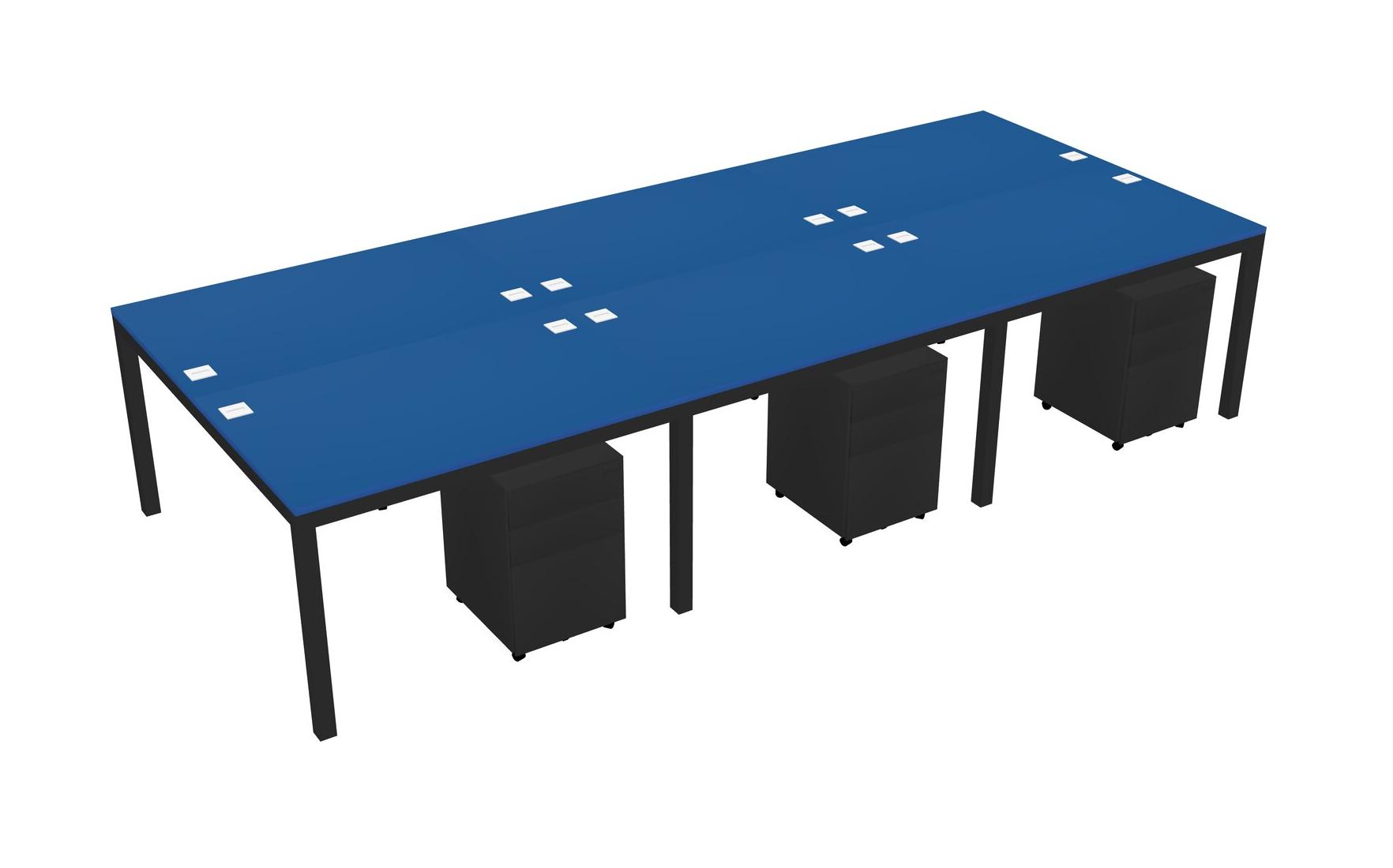 Prism Blue Shared Rectangular Office Desk With Metal Mobile Drawers For 6 Persons