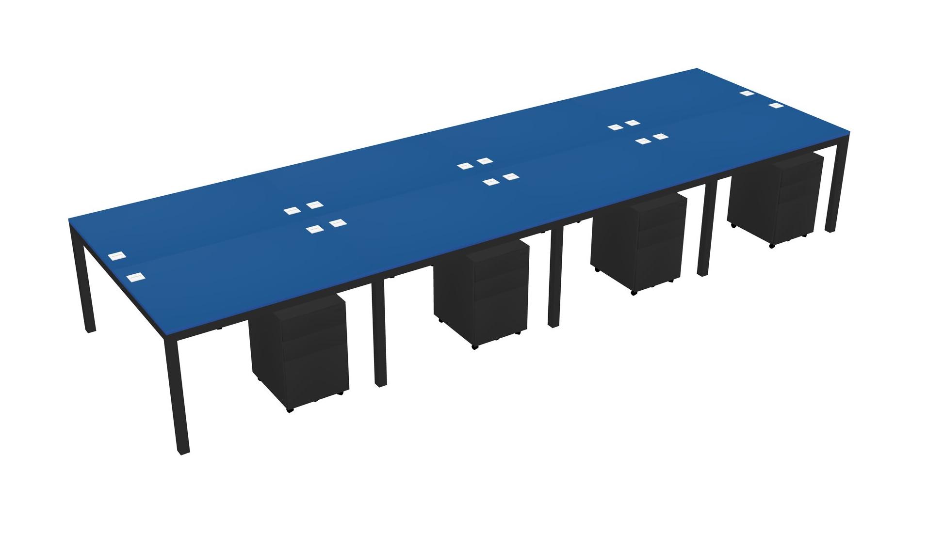 Prism Blue Shared Rectangular Office Desk With Metal Mobile Drawers For 8 Persons