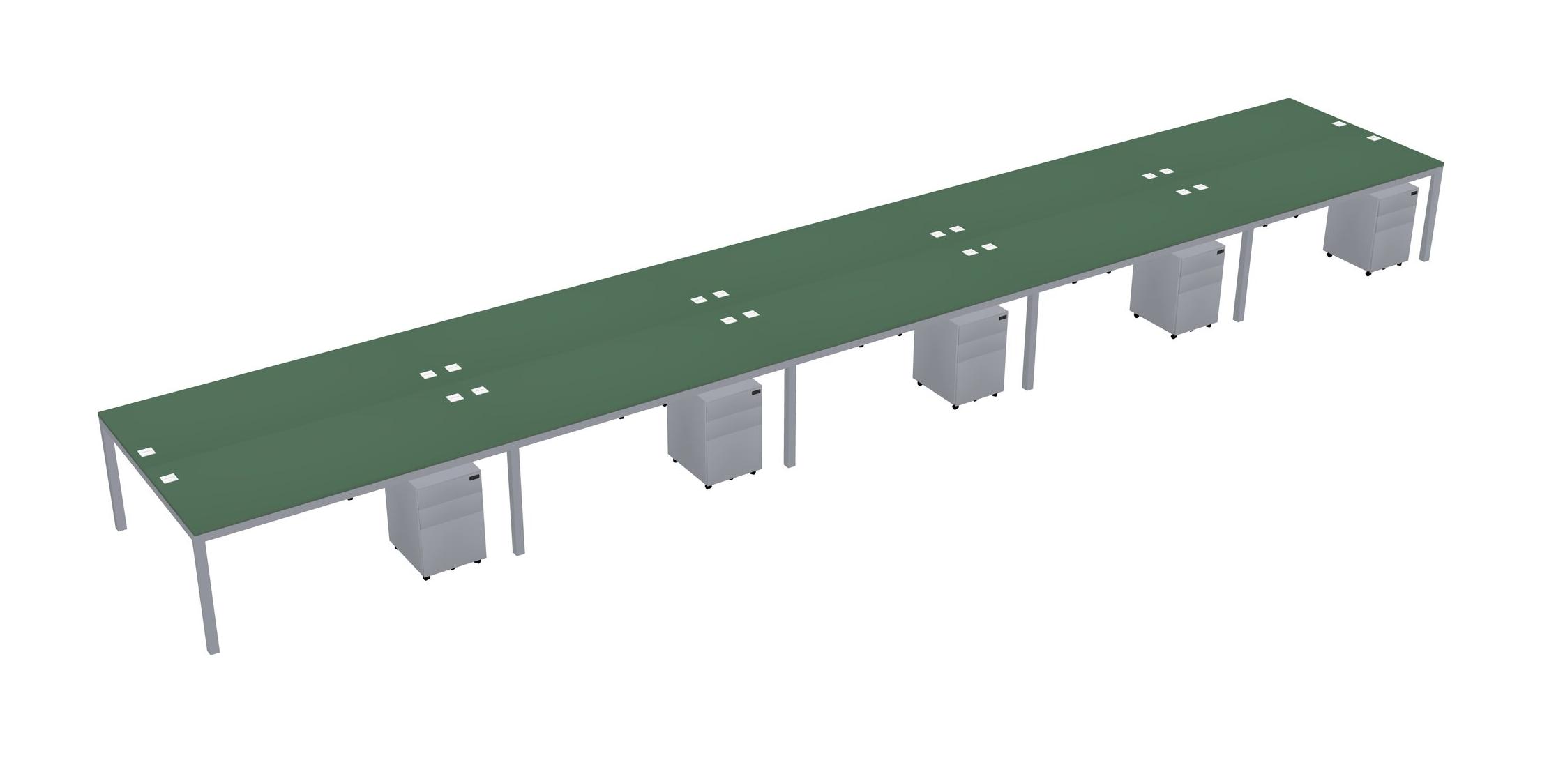 Green Shared Rectangular Office Desk With Metal Mobile Drawers For 10 Persons