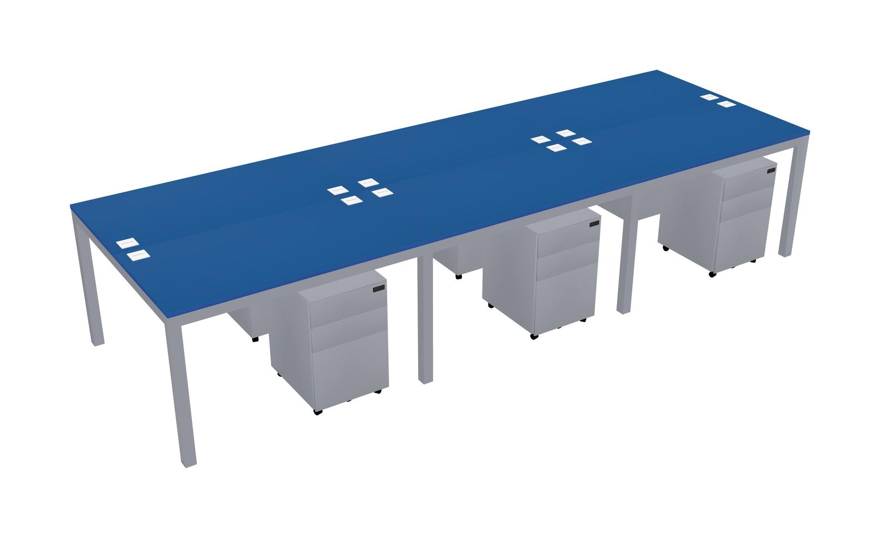 Prism Blue Shared Rectangular Office Desk With Metal Mobile Drawers For 6 Persons