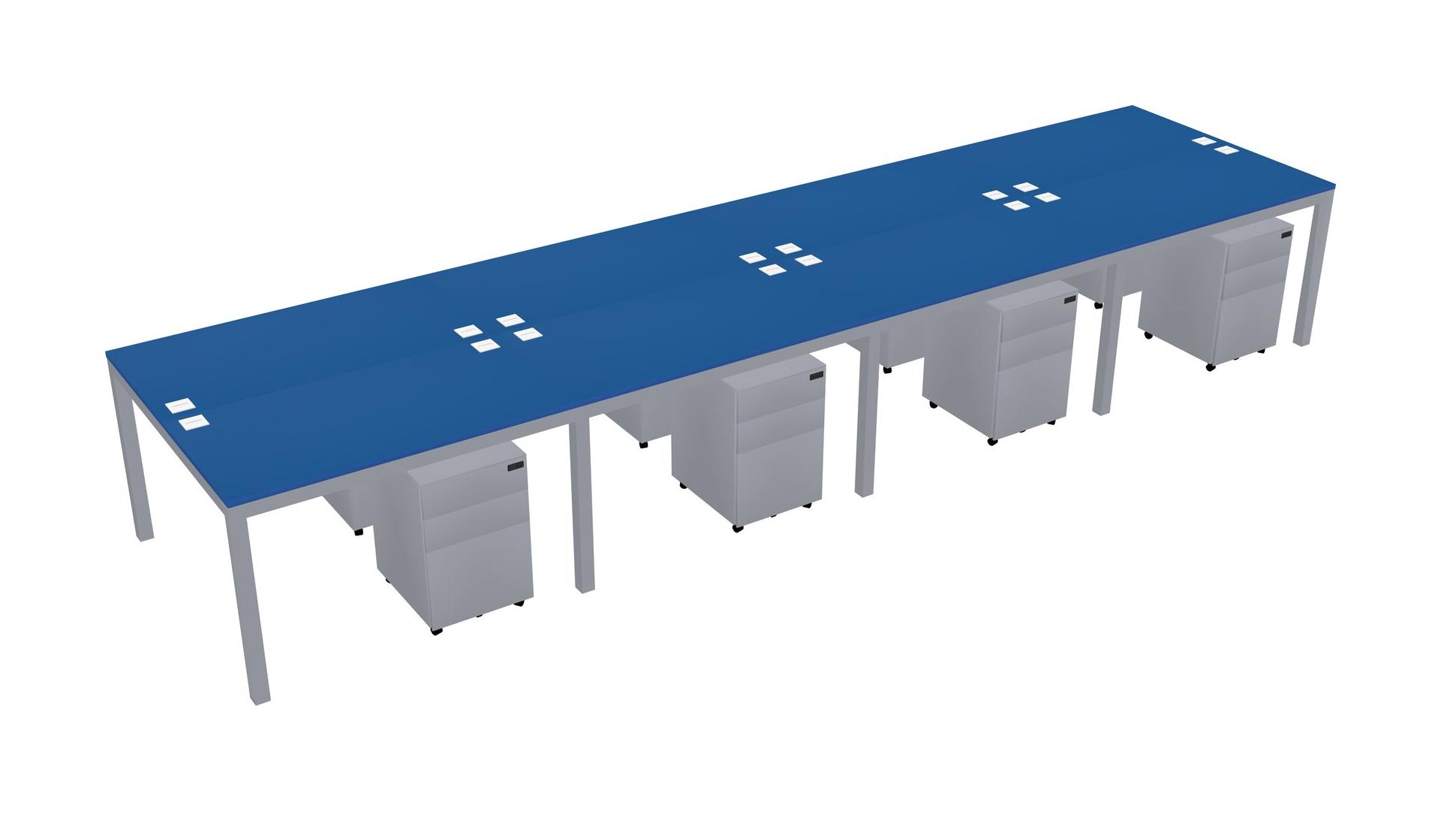 Prism Blue Shared Rectangular Office Desk With Metal Mobile Drawers For 8 Persons