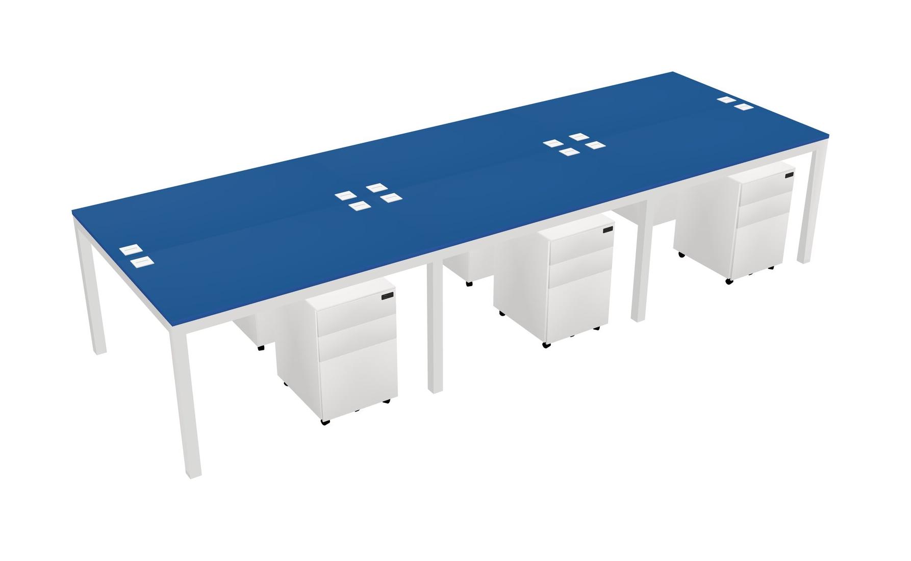 Prism Blue Shared Rectangular Office Desk With Metal Mobile Drawers For 6 Persons