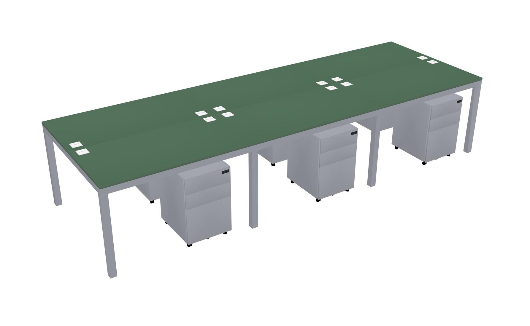 Green Shared Rectangular Office Desk With Metal Mobile Drawers For 6 Persons