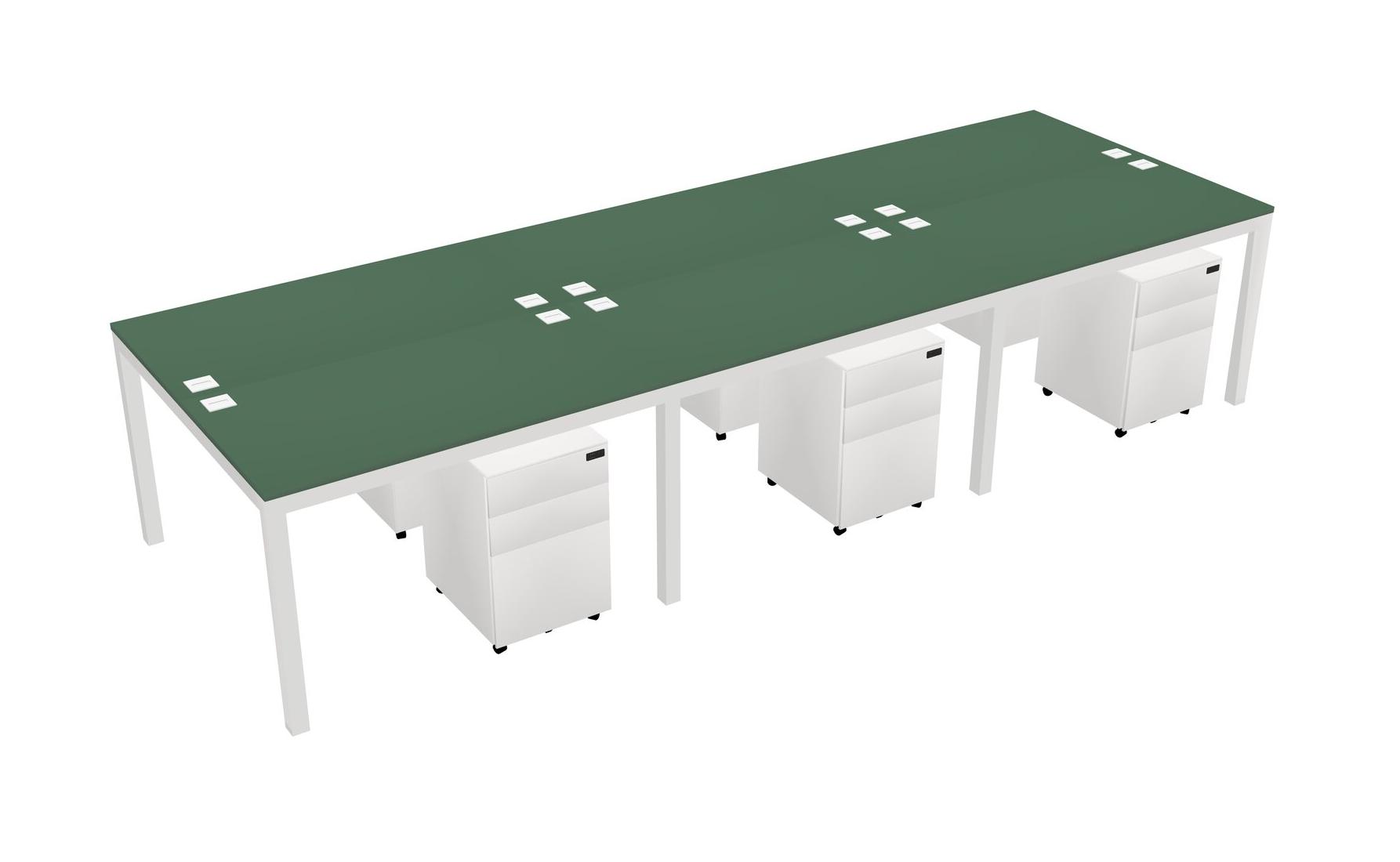 Green Shared Rectangular Office Desk With Metal Mobile Drawers For 6 Persons