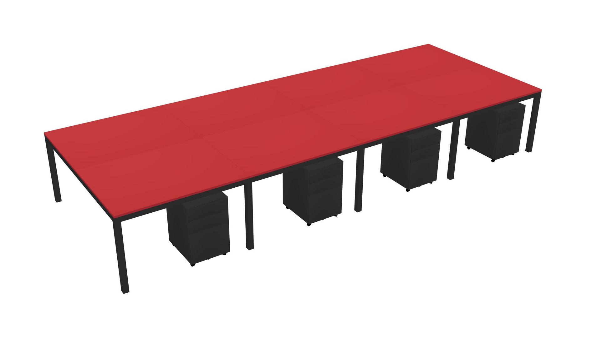 Prism Red Shared Rectangular Office Desk With Metal Mobile Drawers For 8 Persons