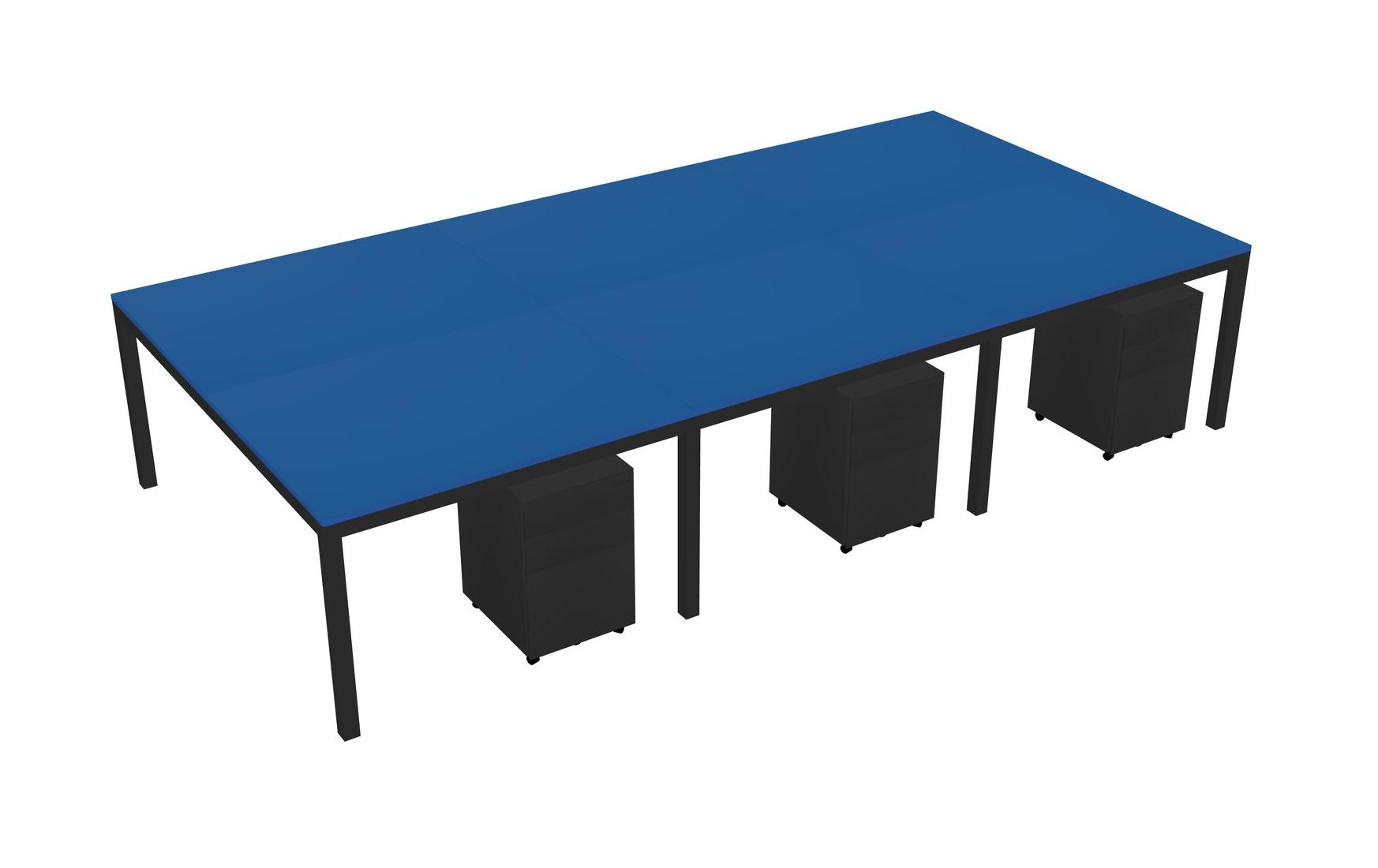 Prism Blue Shared Rectangular Office Desk With Metal Mobile Drawers For 6 Persons