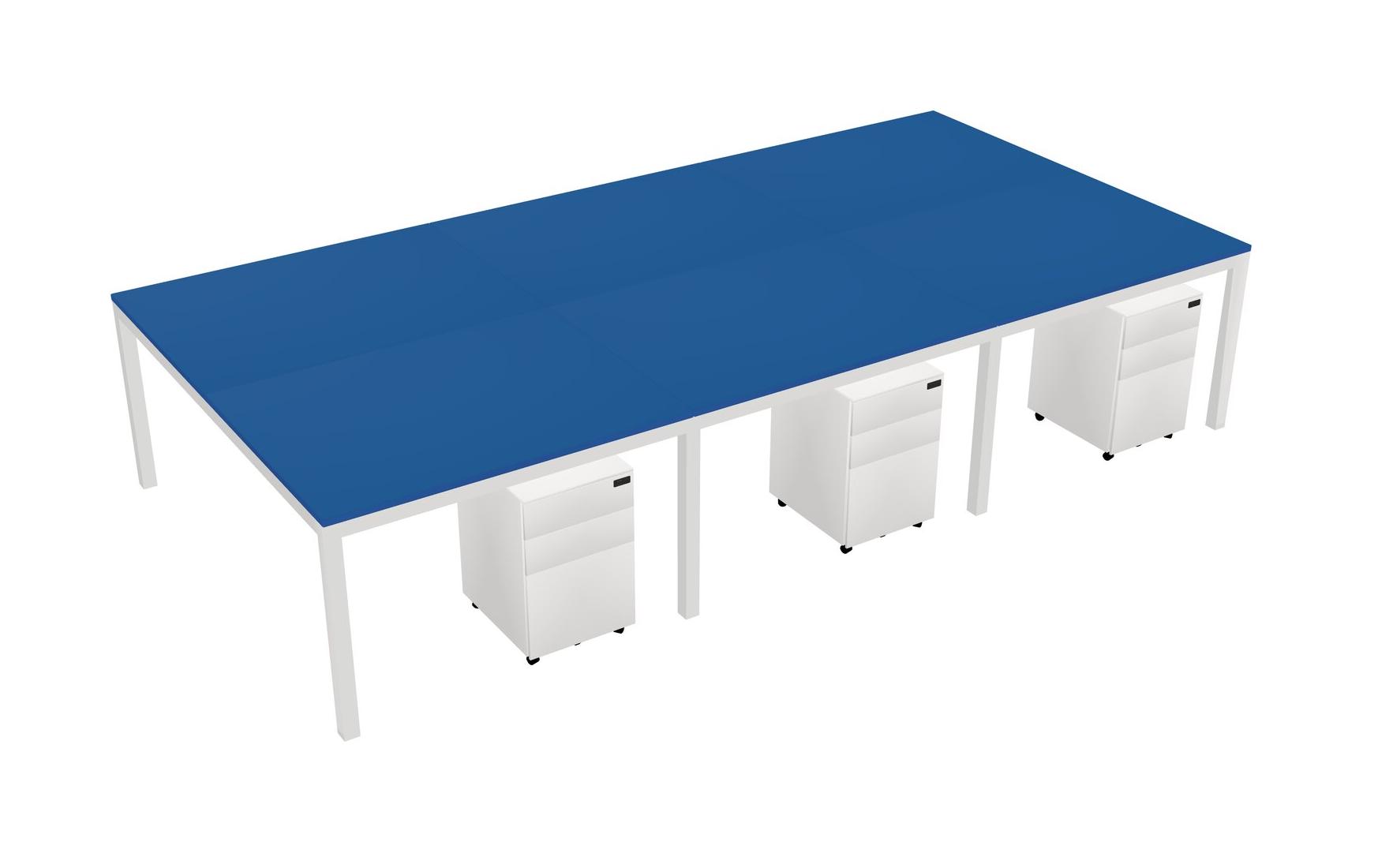 Prism Blue Shared Rectangular Office Desk With Metal Mobile Drawers For 6 Persons