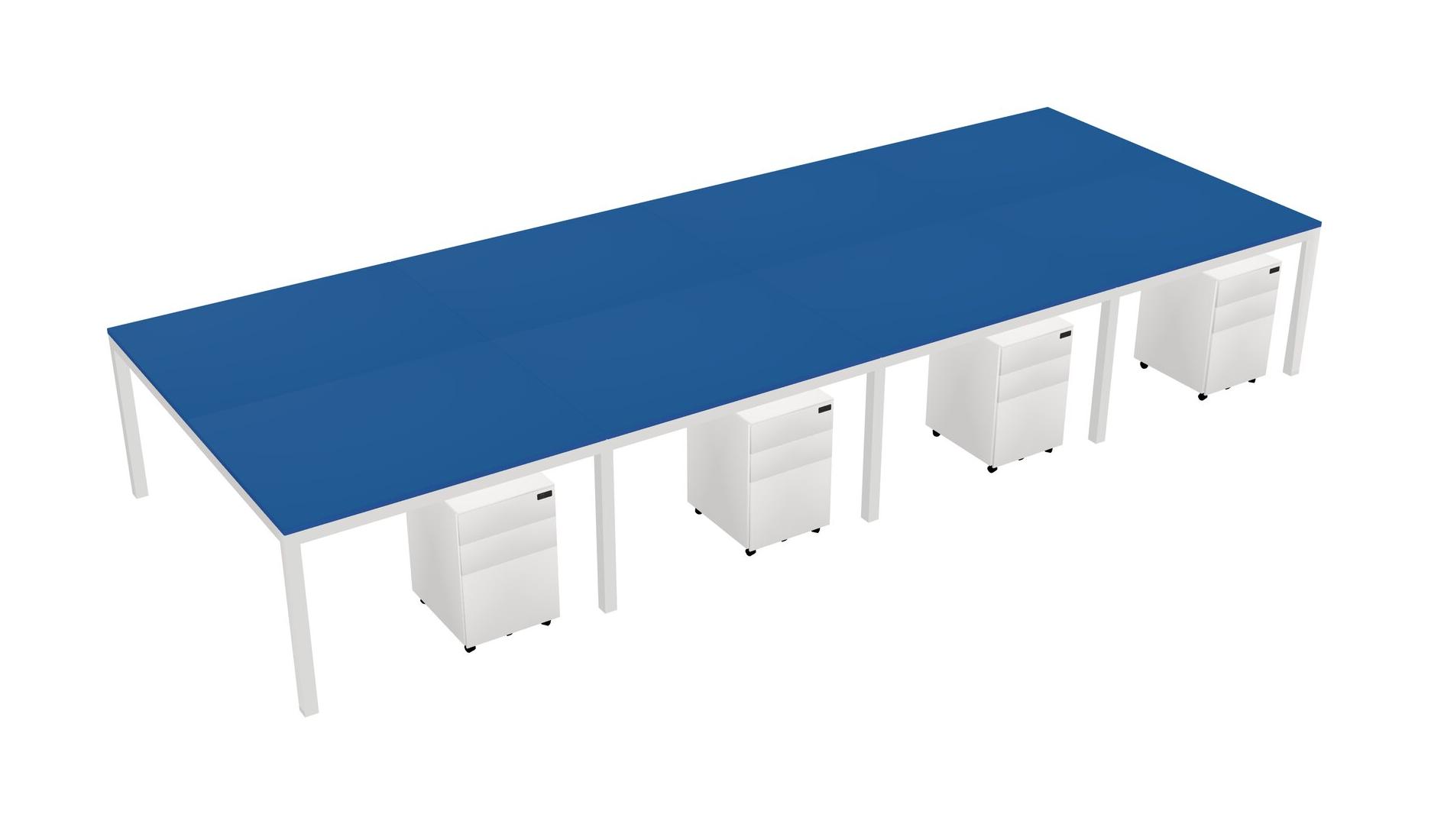 Prism Blue Shared Rectangular Office Desk With Metal Mobile Drawers For 8 Persons
