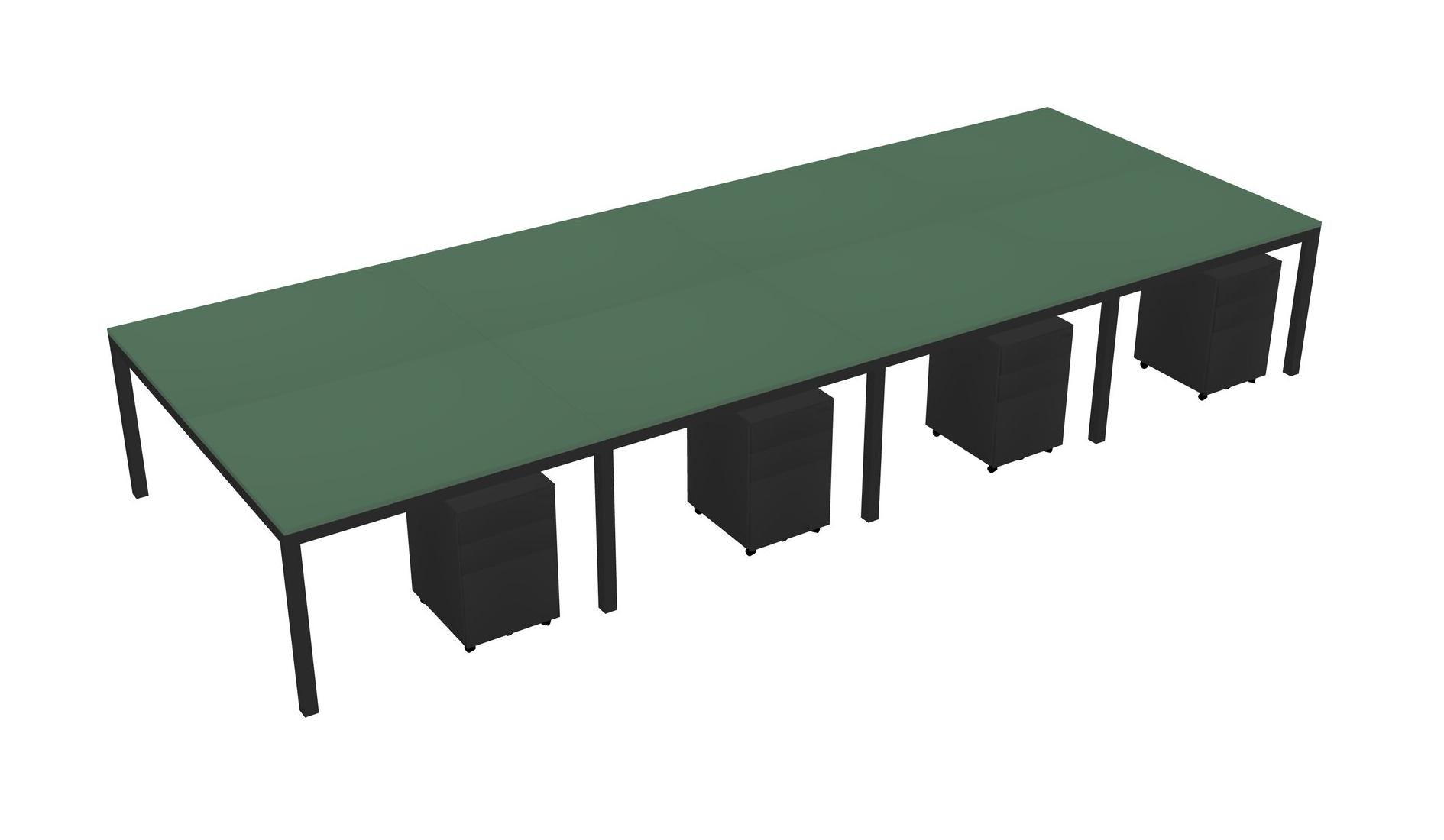 Green Shared Rectangular Office Desk With Metal Mobile Drawers For 8 Persons