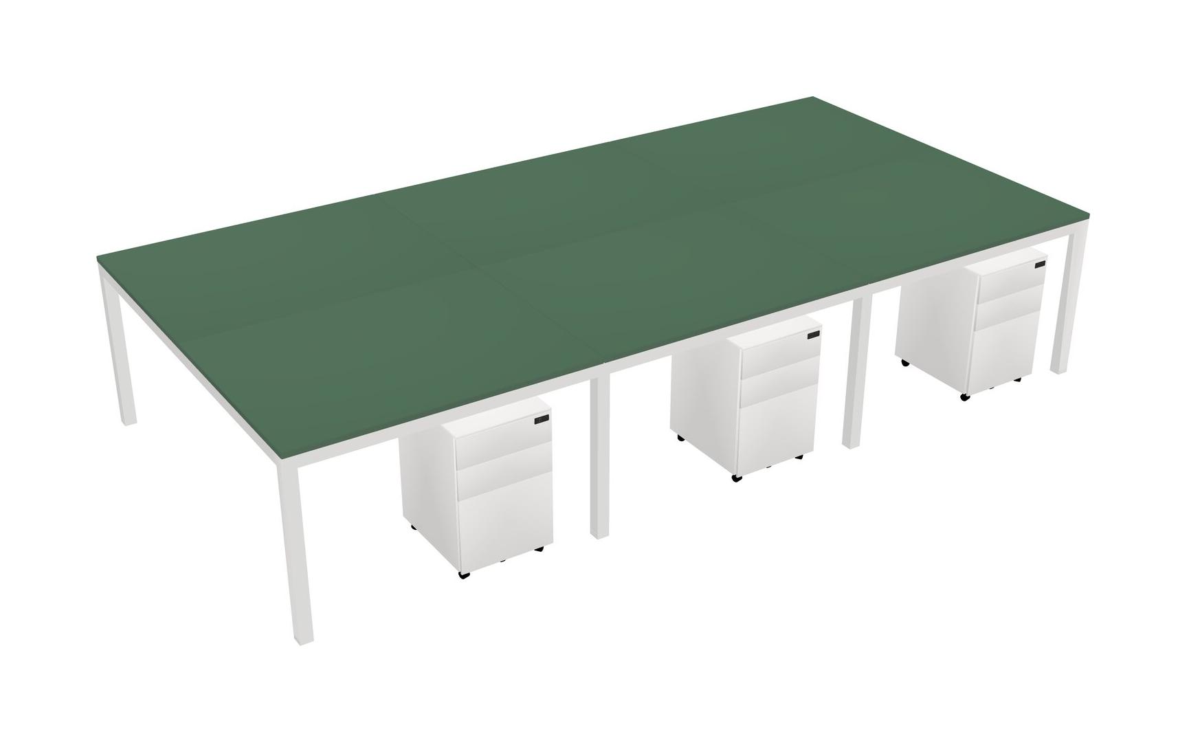 Green Shared Rectangular Office Desk With Metal Mobile Drawers For 6 Persons