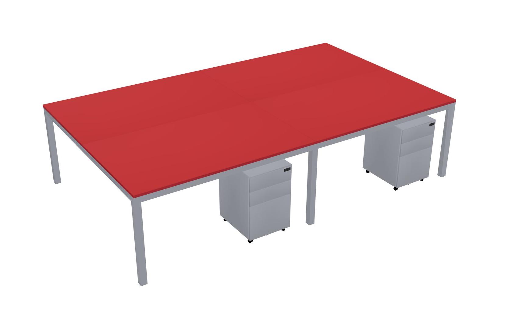 Prism Red Shared Rectangular Office Desk With Metal Mobile Drawers For 4 Persons