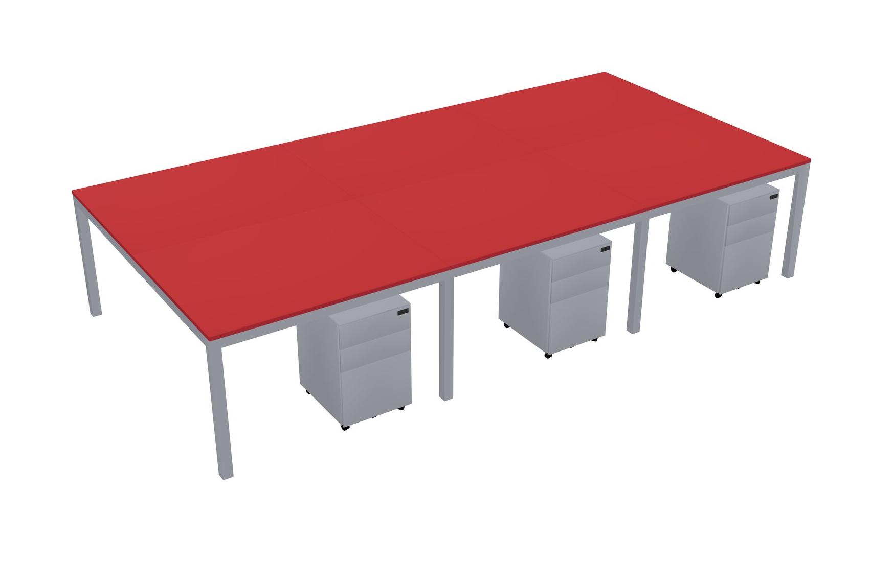 Prism Red Shared Rectangular Office Desk With Metal Mobile Drawers For 6 Persons