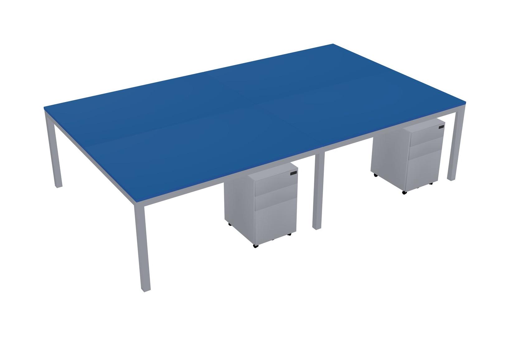 Prism Blue Shared Rectangular Office Desk With Metal Mobile Drawers For 4 Persons
