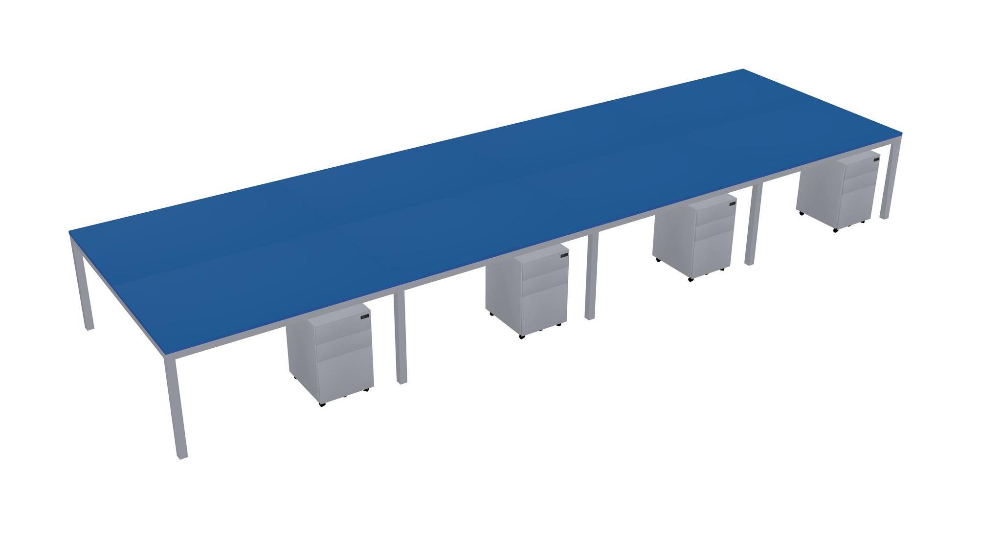 Prism Blue Shared Rectangular Office Desk With Metal Mobile Drawers For 8 Persons