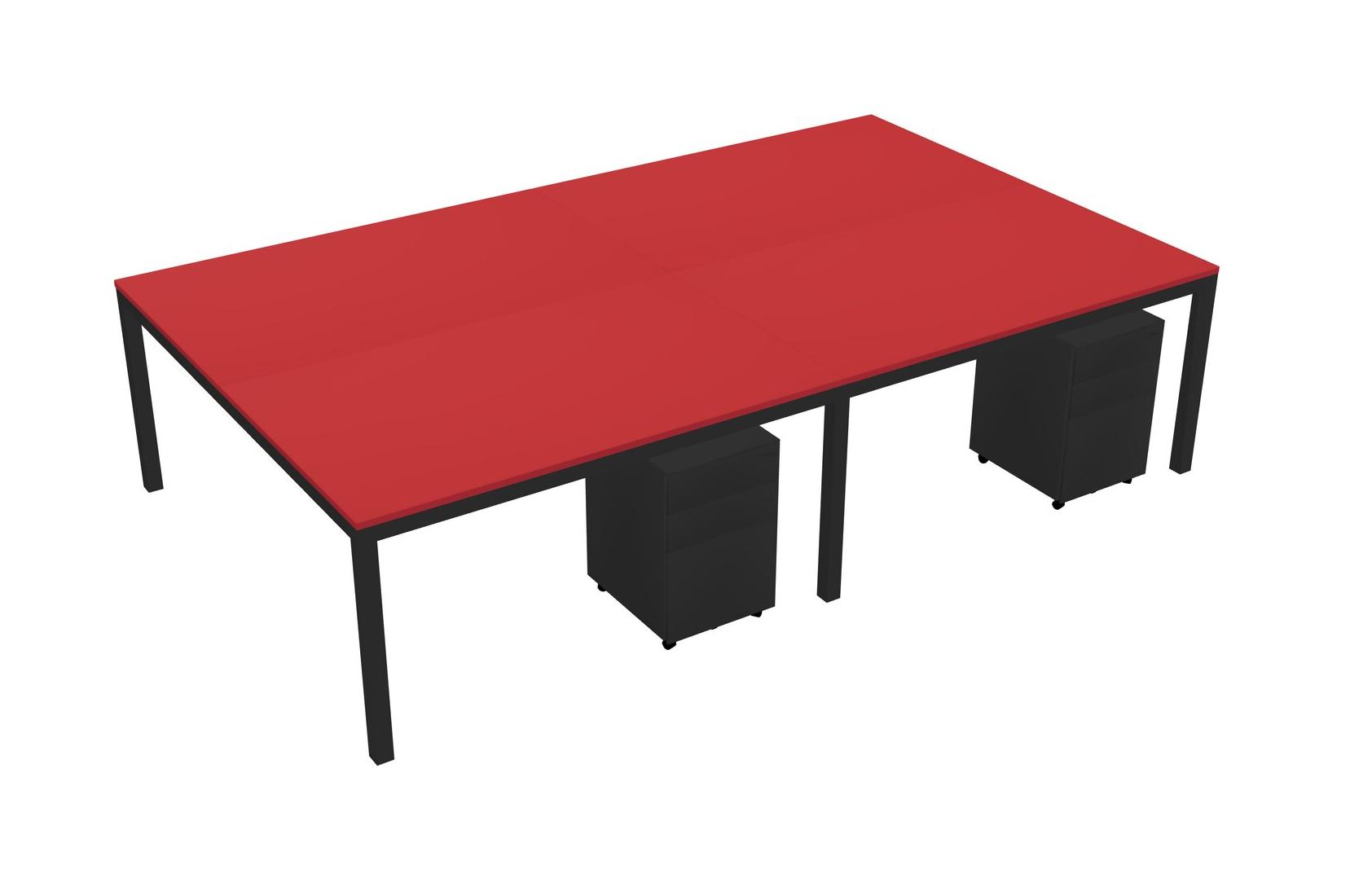 Prism Red Shared Rectangular Office Desk With Metal Mobile Drawers For 4 Persons
