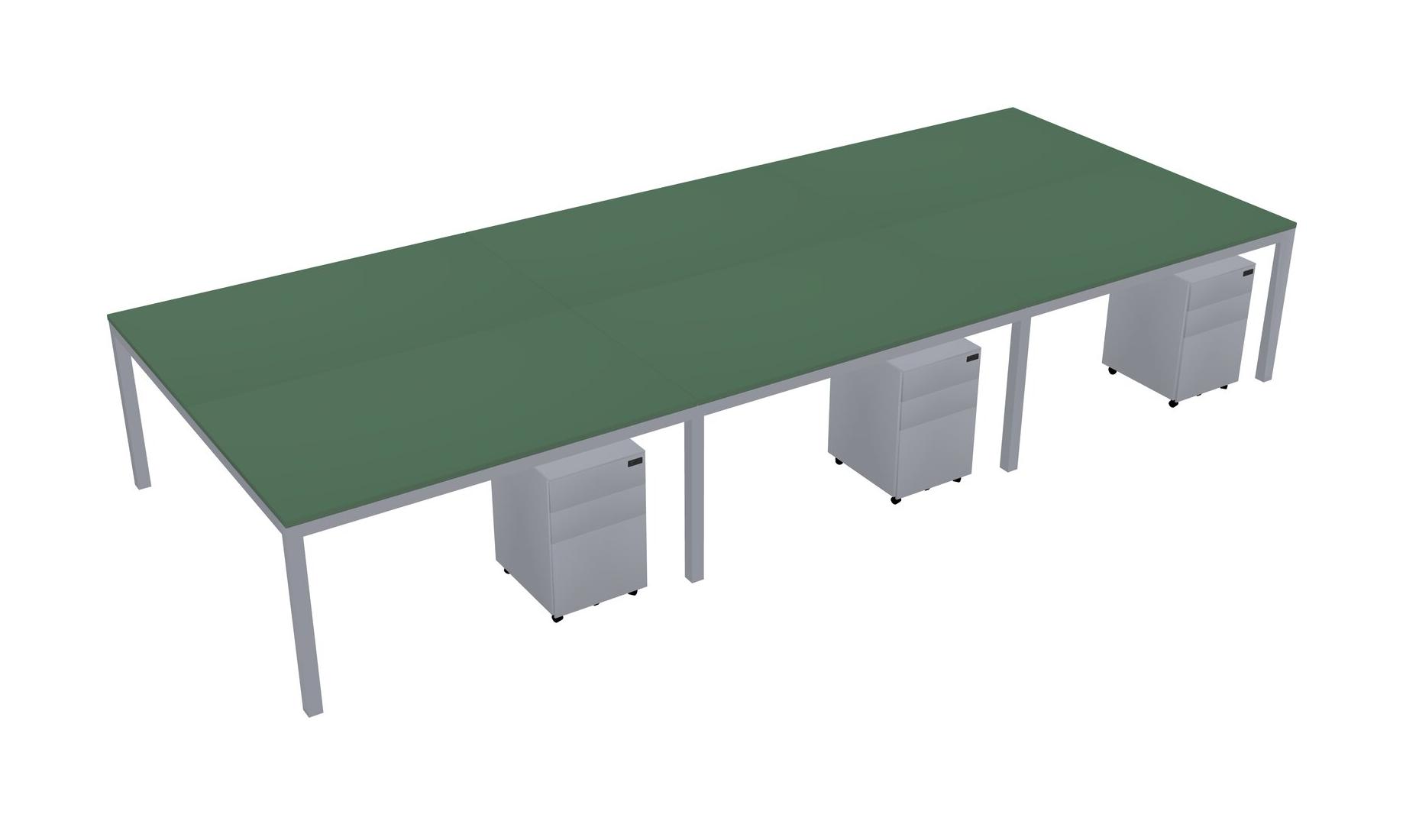 Green Shared Rectangular Office Desk With Metal Mobile Drawers For 6 Persons
