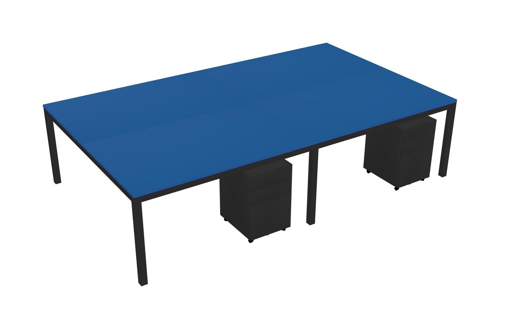 Prism Blue Shared Rectangular Office Desk With Metal Mobile Drawers For 4 Persons