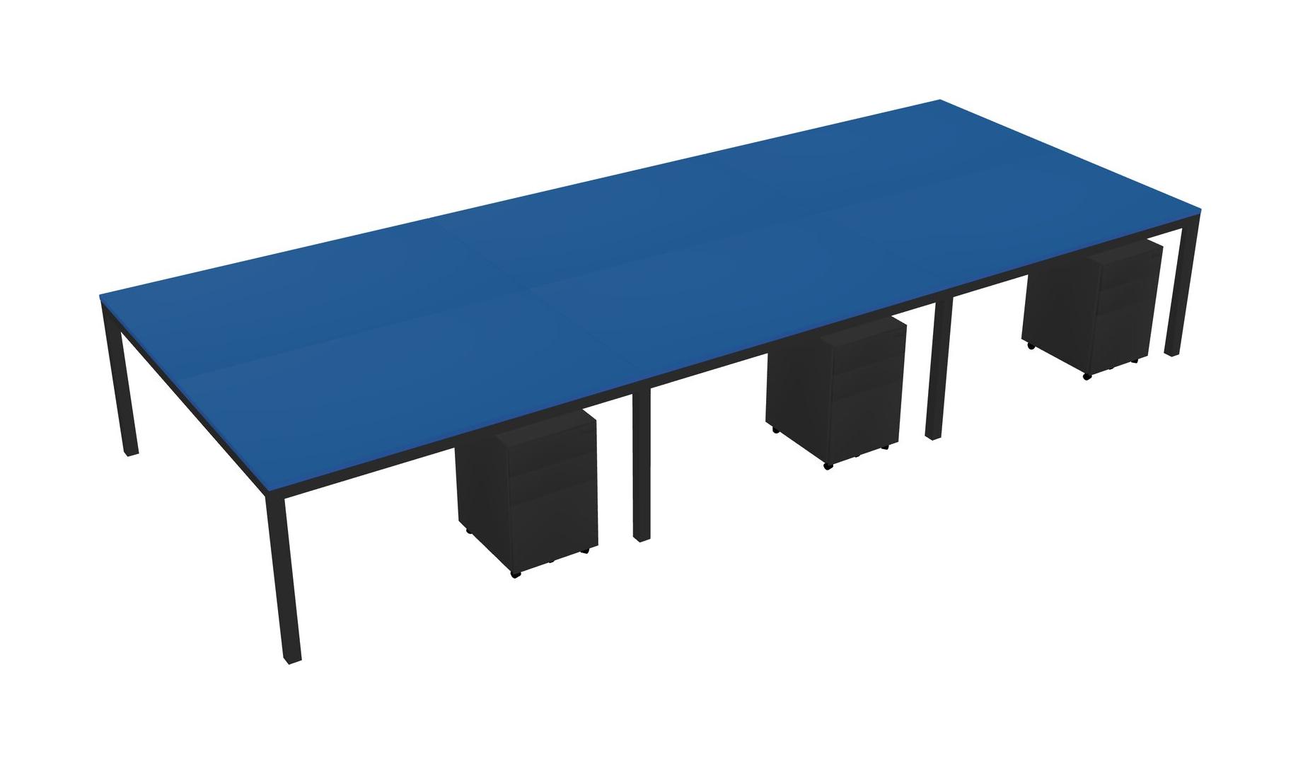 Prism Blue Shared Rectangular Office Desk With Metal Mobile Drawers For 6 Persons