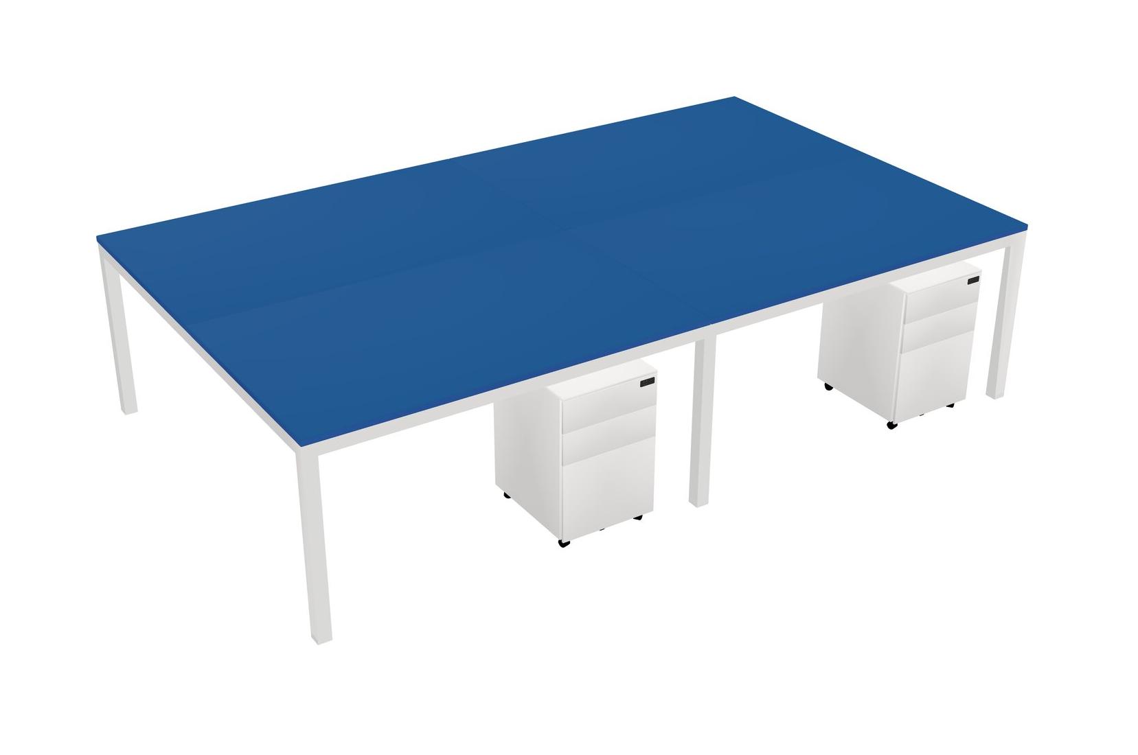 Prism Blue Shared Rectangular Office Desk With Metal Mobile Drawers For 4 Persons