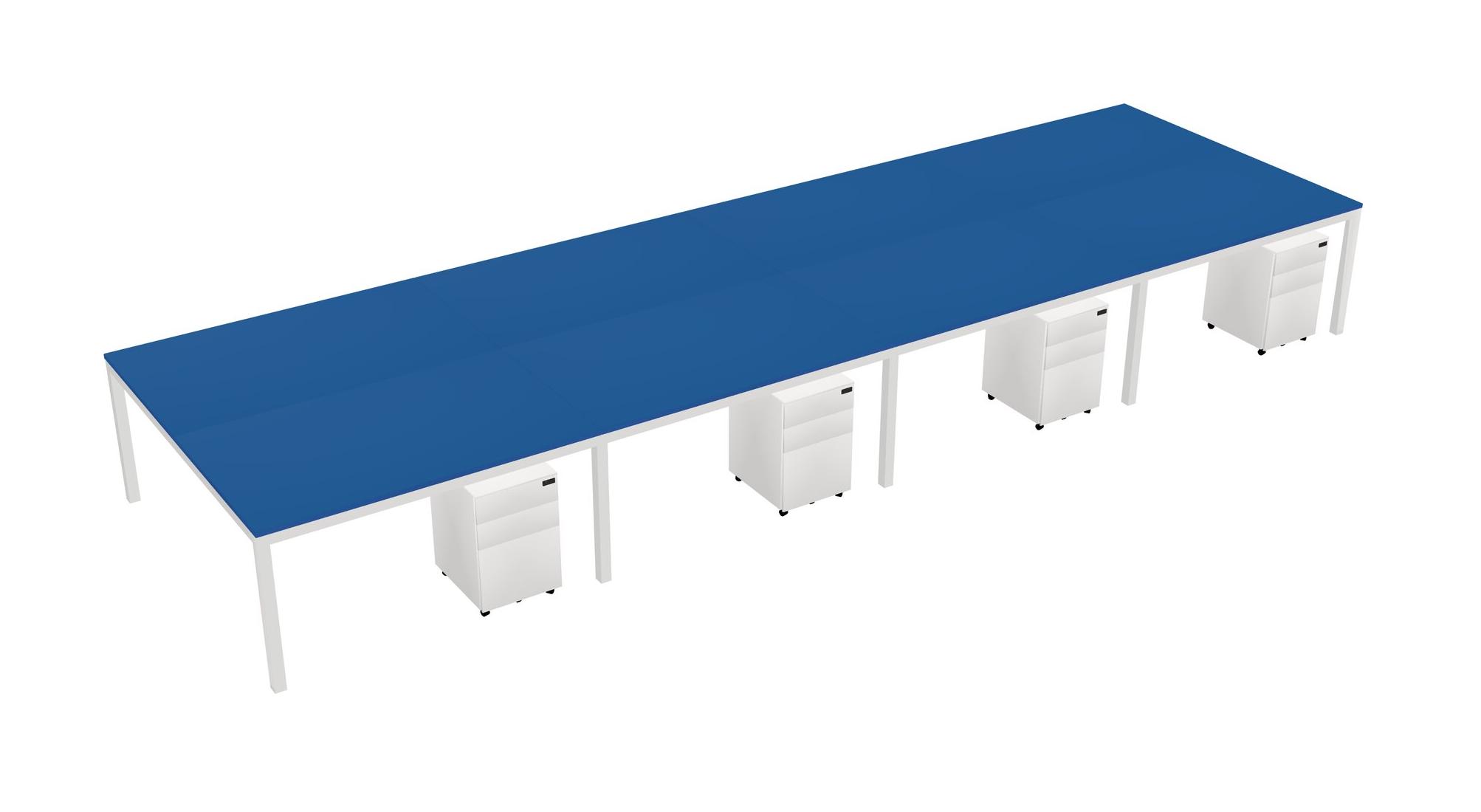 Prism Blue Shared Rectangular Office Desk With Metal Mobile Drawers For 8 Persons