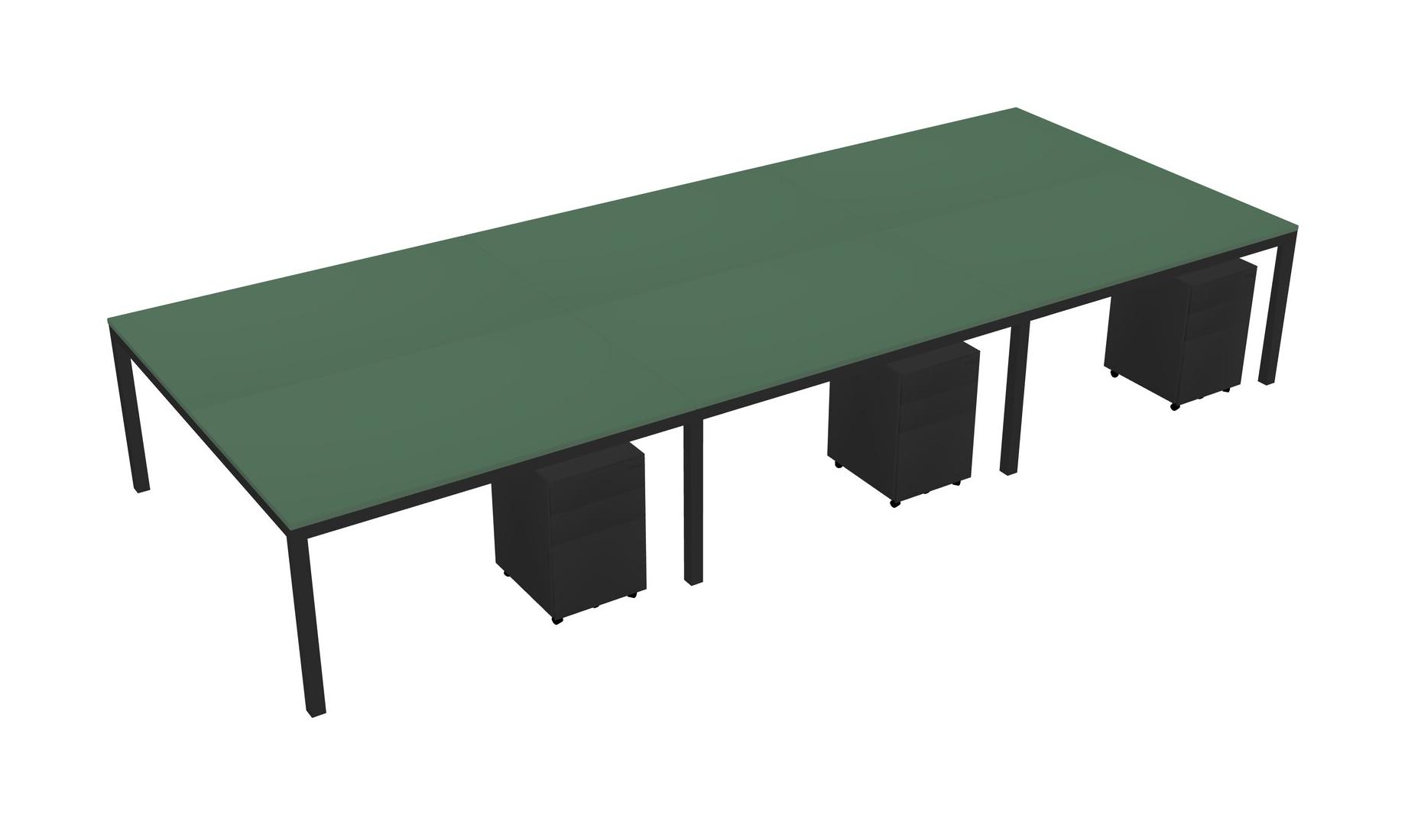 Green Shared Rectangular Office Desk With Metal Mobile Drawers For 6 Persons