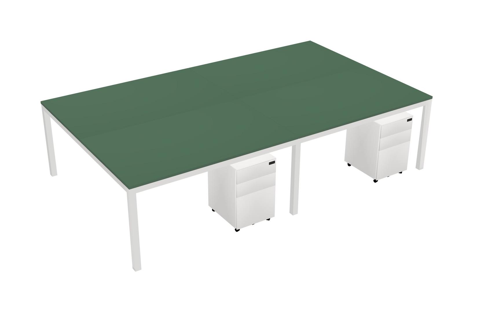 Green Shared Rectangular Office Desk With Metal Mobile Drawers For 4 Persons
