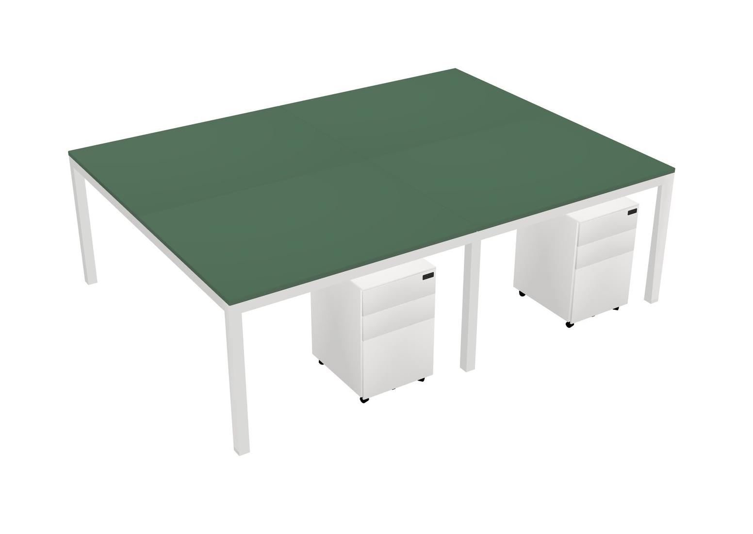 Green Shared Rectangular Office Desk With Metal Mobile Drawers For 4 Persons