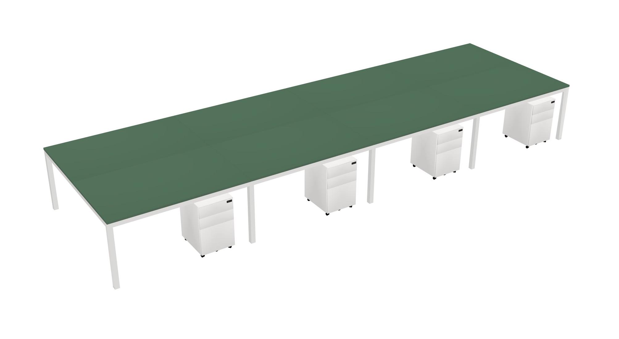 Green Shared Rectangular Office Desk With Metal Mobile Drawers For 8 Persons