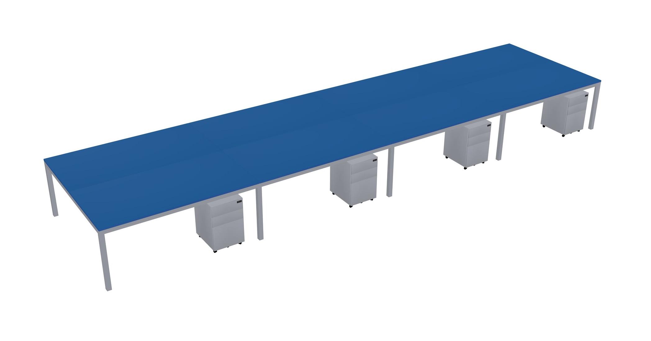 Prism Blue Shared Rectangular Office Desk With Metal Mobile Drawers For 8 Persons