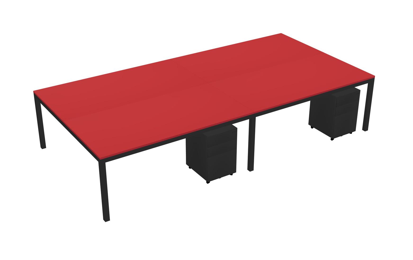 Prism Red Shared Rectangular Office Desk With Metal Mobile Drawers For 4 Persons