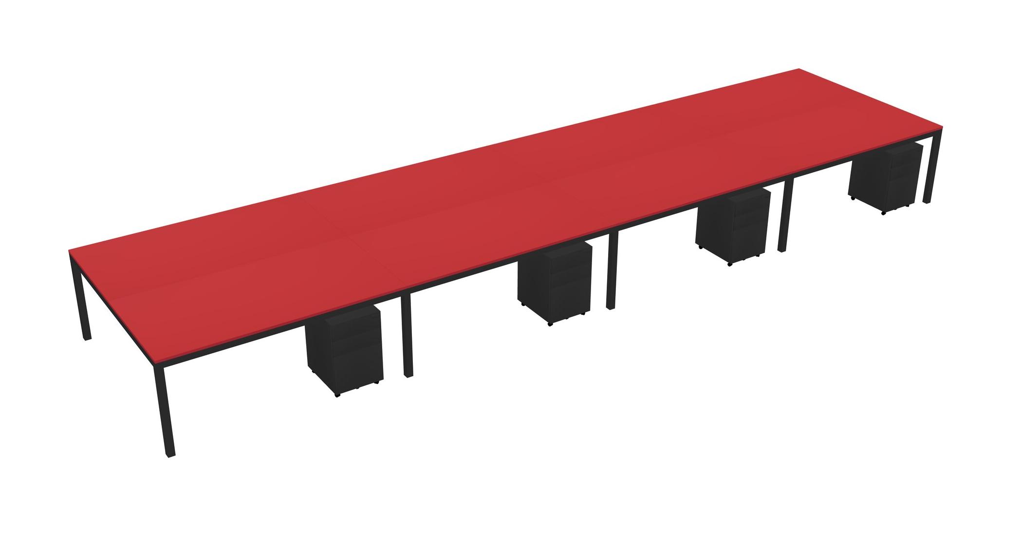 Prism Red Shared Rectangular Office Desk With Metal Mobile Drawers For 8 Persons