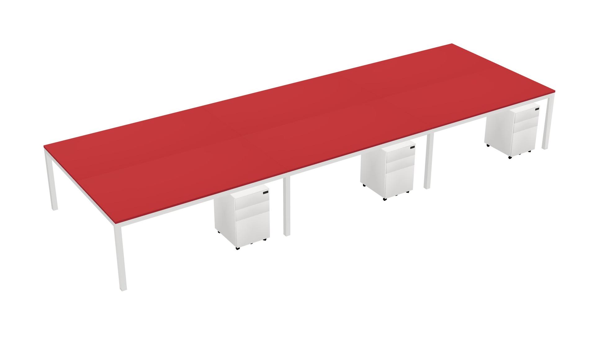 Prism Red Shared Rectangular Office Desk With Metal Mobile Drawers For 6 Persons