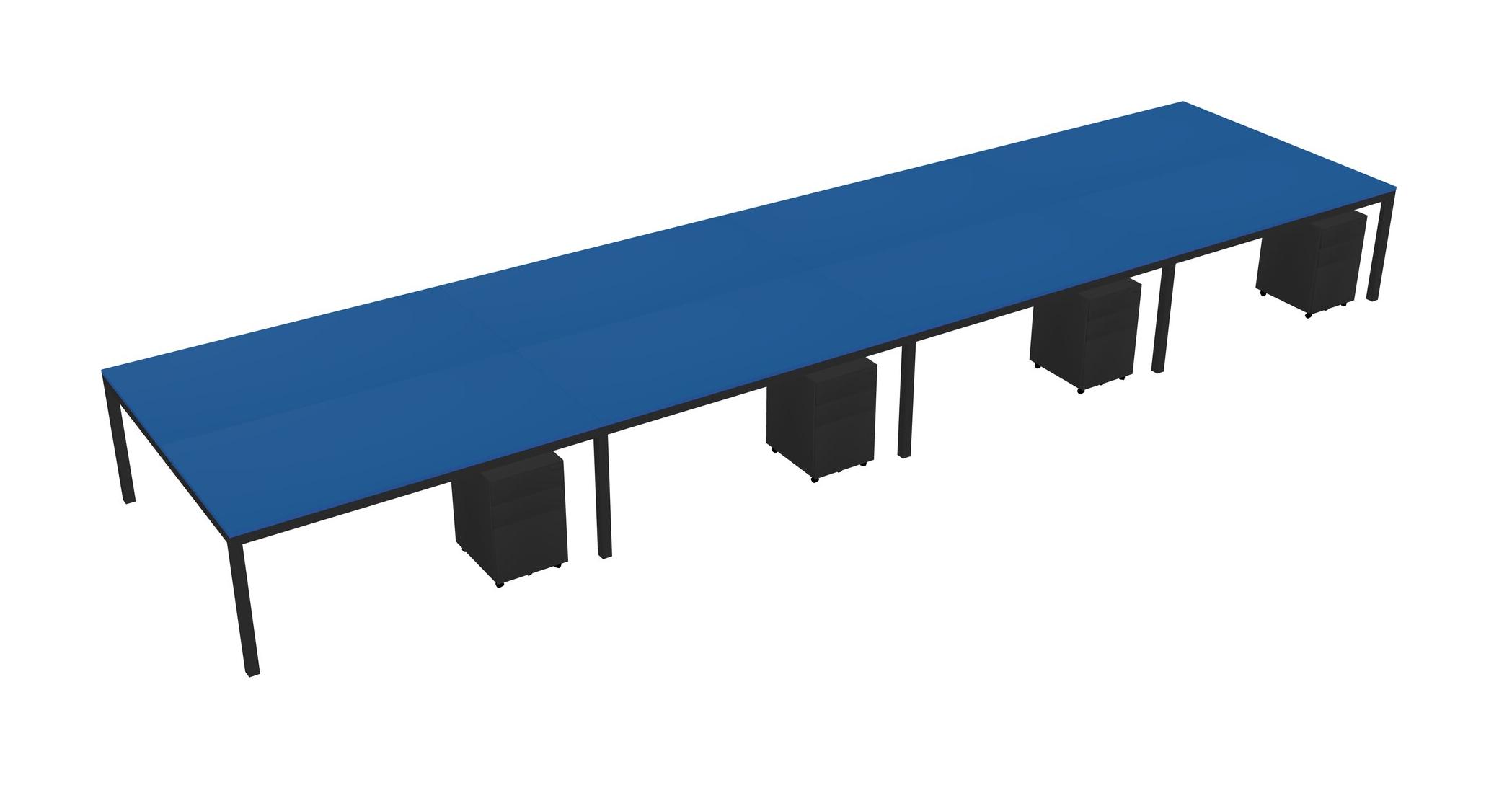 Prism Blue Shared Rectangular Office Desk With Metal Mobile Drawers For 8 Persons