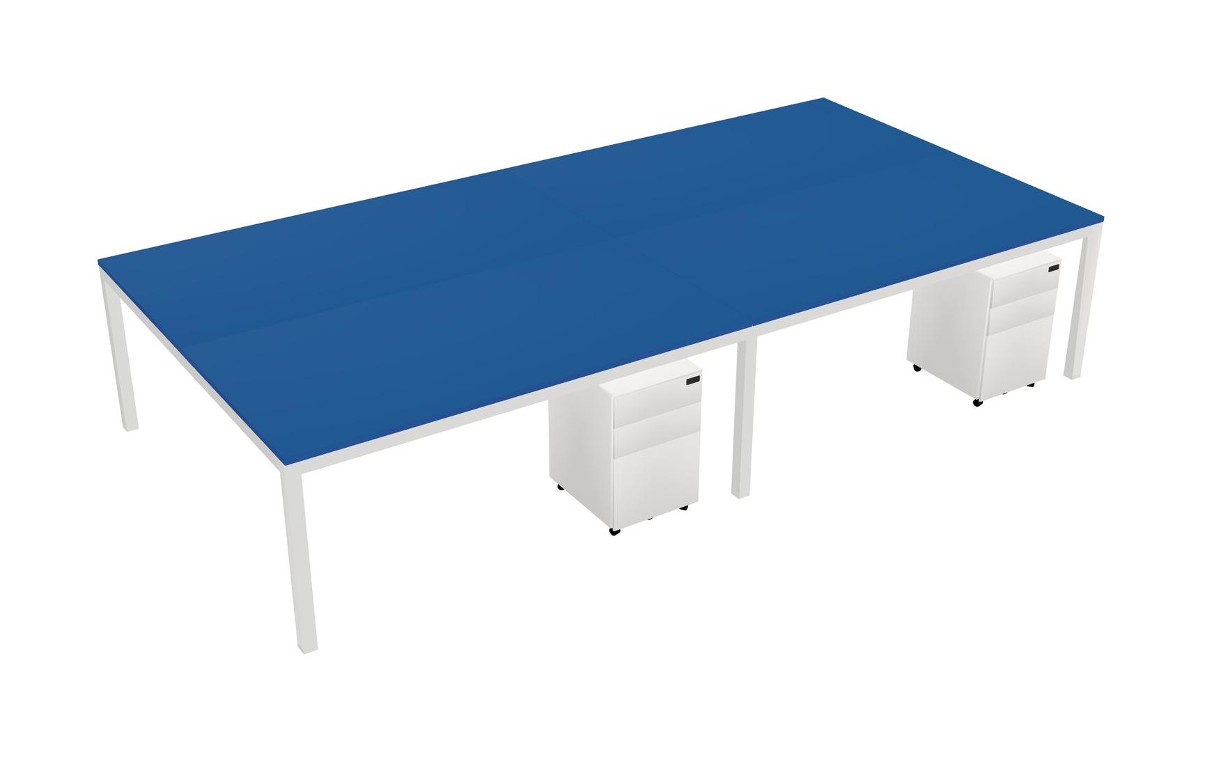 Prism Blue Shared Rectangular Office Desk With Metal Mobile Drawers For 4 Persons