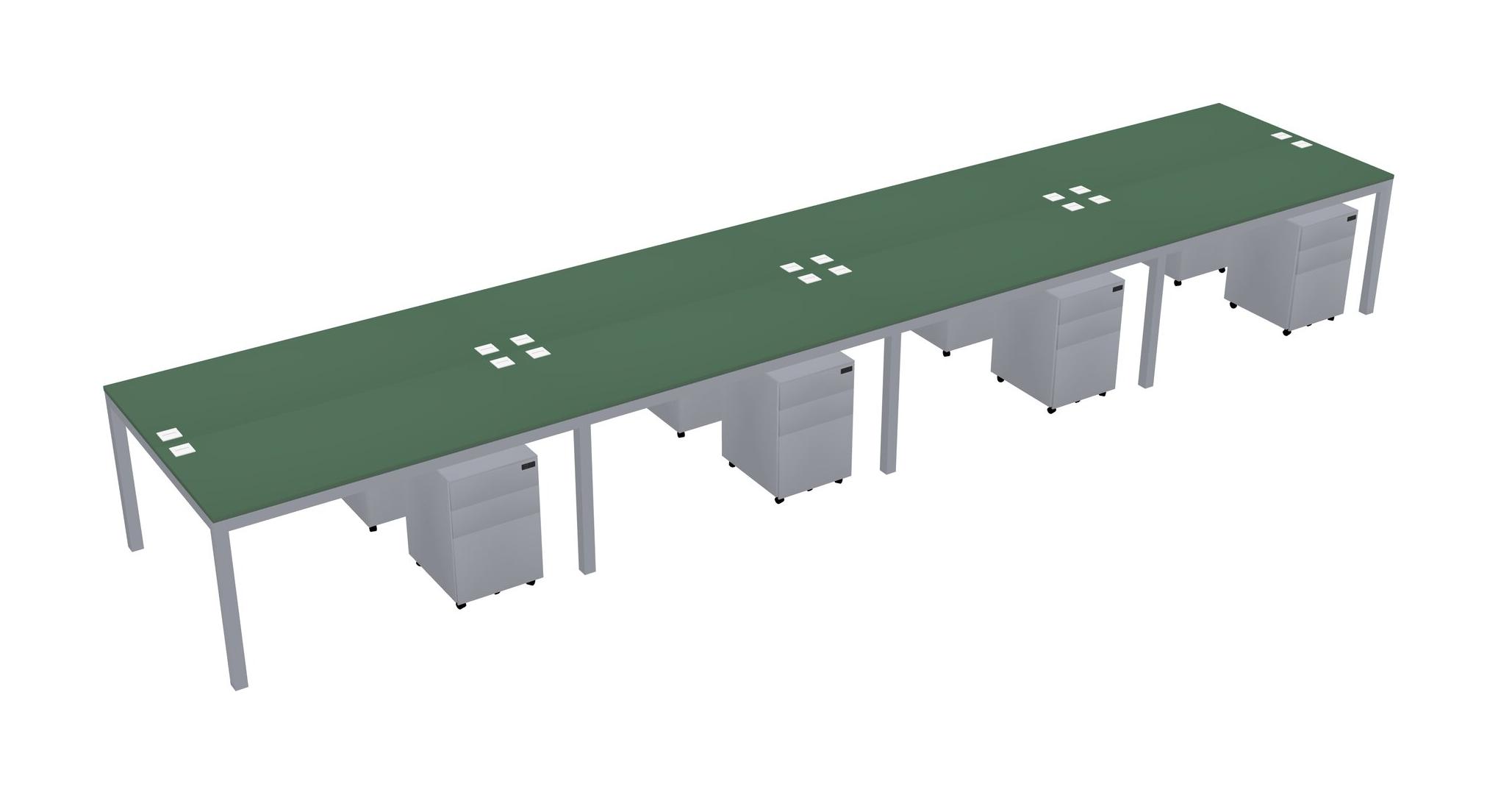 Green Shared Rectangular Office Desk With Metal Mobile Drawers For 8 Persons