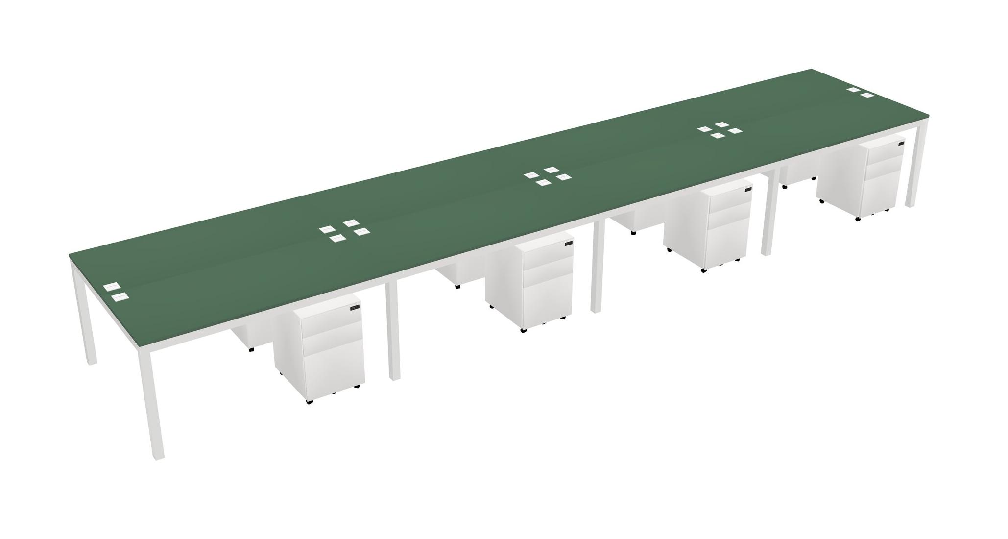 Green Shared Rectangular Office Desk With Metal Mobile Drawers For 8 Persons