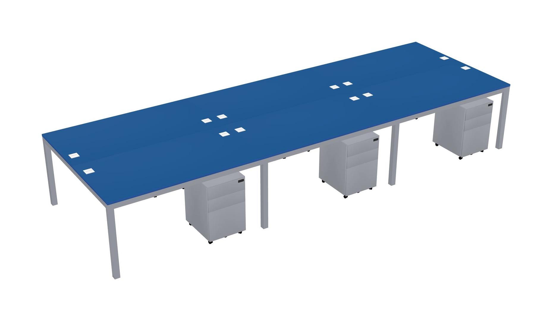 Prism Blue Shared Rectangular Office Desk With Metal Mobile Drawers For 6 Persons