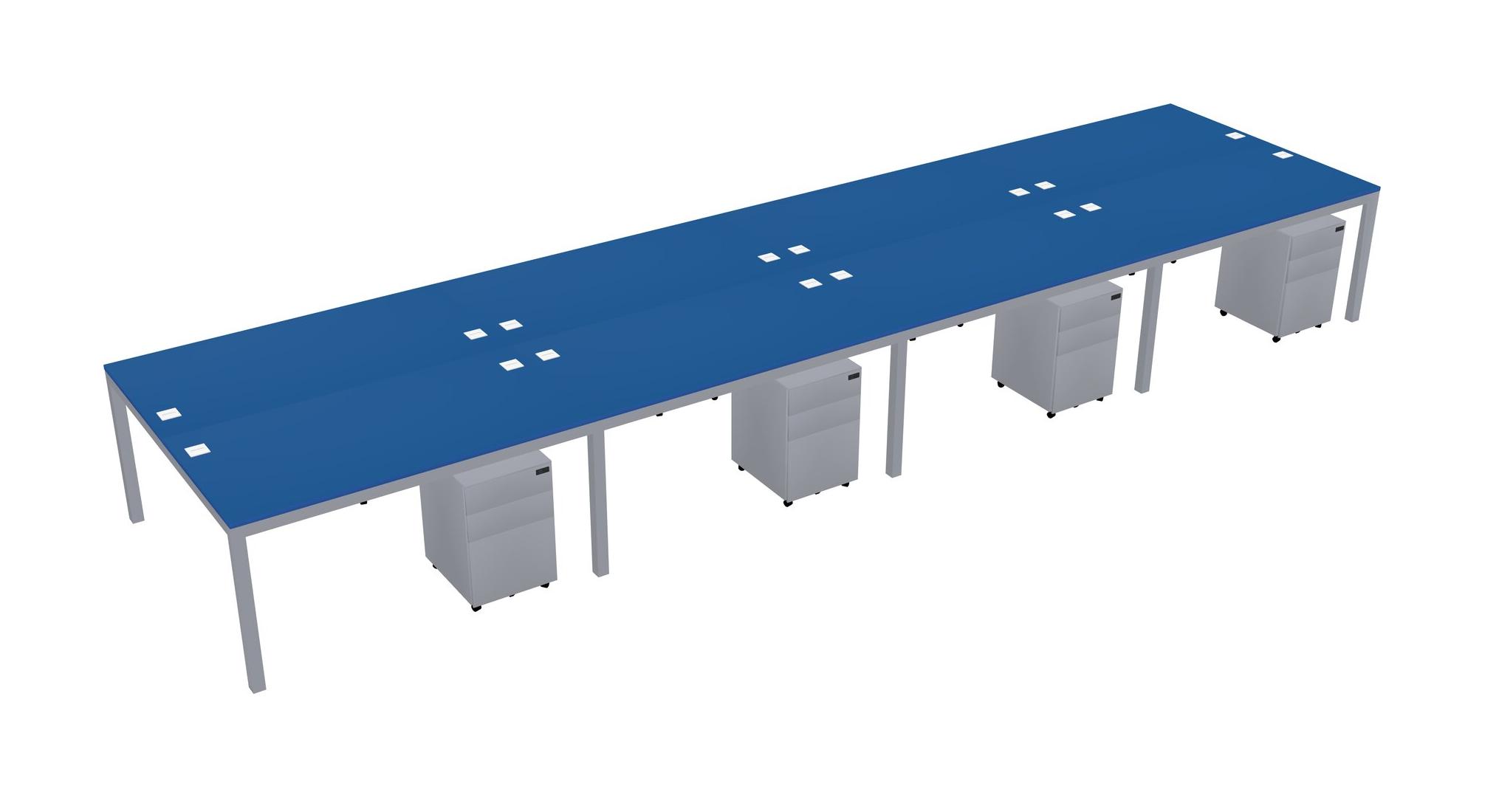 Prism Blue Shared Rectangular Office Desk With Metal Mobile Drawers For 8 Persons
