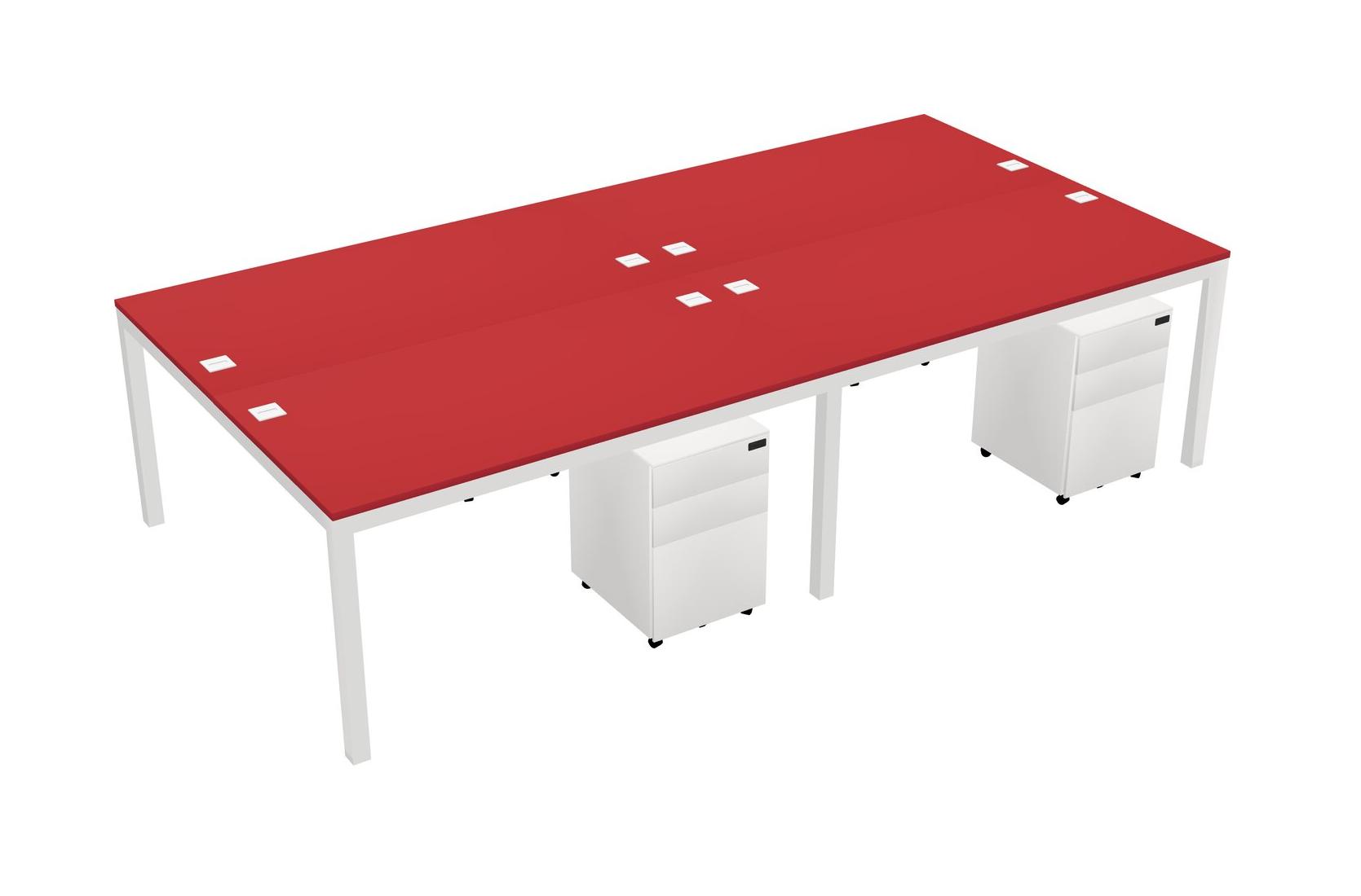 Prism Red Shared Rectangular Office Desk With Metal Mobile Drawers For 4 Persons